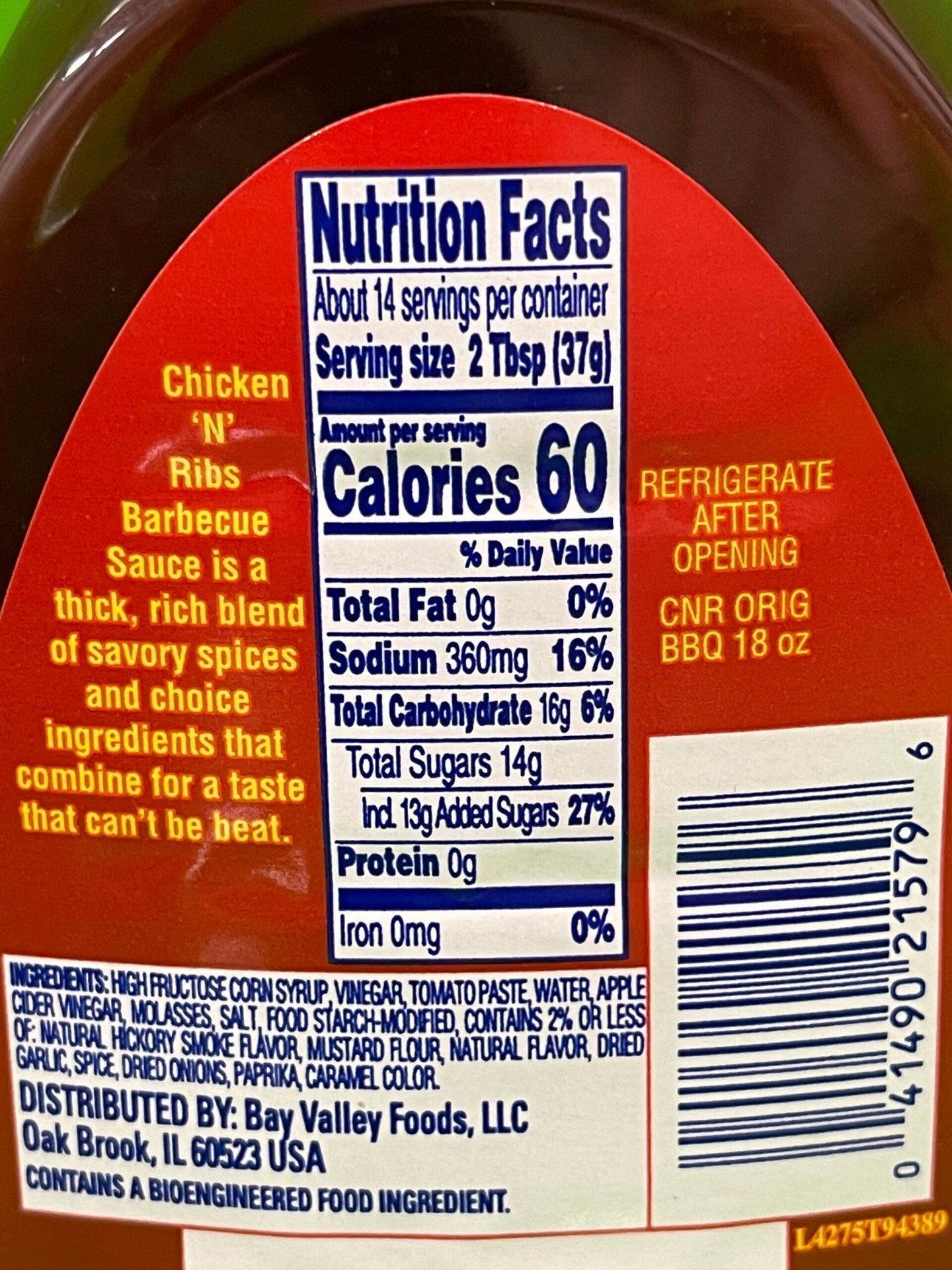 Spruce up your meal with Chicken N Ribs Barbecue Sauce 18.0 oz. It is a good choice for spreading on meats before they are cooked. Add this Chicken N Ribs sauce to a wide range of poultry items, such as wings, drumsticks, thighs and breasts. It also goes well on a slab of ribs that are going to be grilled or slow-cooked in a smoker. Made from quality ingredients, this barbecue sauce for grilling has a thick texture. It features a rich and savory flavor that is heightened with a blend of spices. It is handy for making a variety of southern dishes. This sauce contains no fat or calories, making it suitable for most diets. It is a good choice for easy everyday cooking at home or for a larger cookout with friends and family.