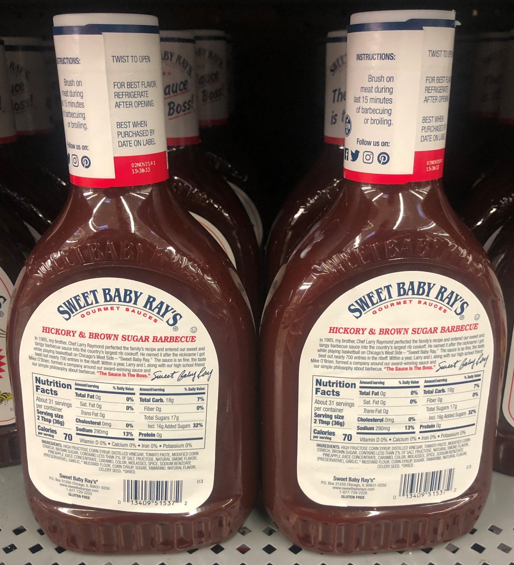 - Sweet Baby Ray's® Hickory & Brown Sugar Barbecue Sauce.