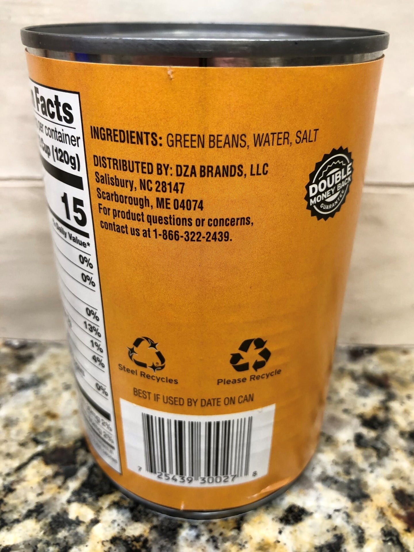 Cha Ching Green Beans, Cut, Can Take your savings to the bank!. Per 1/2 Cup: 15 calories; 0 g sat fat (0% DV); 290 mg sodium (13% DV); 1 g total sugars.