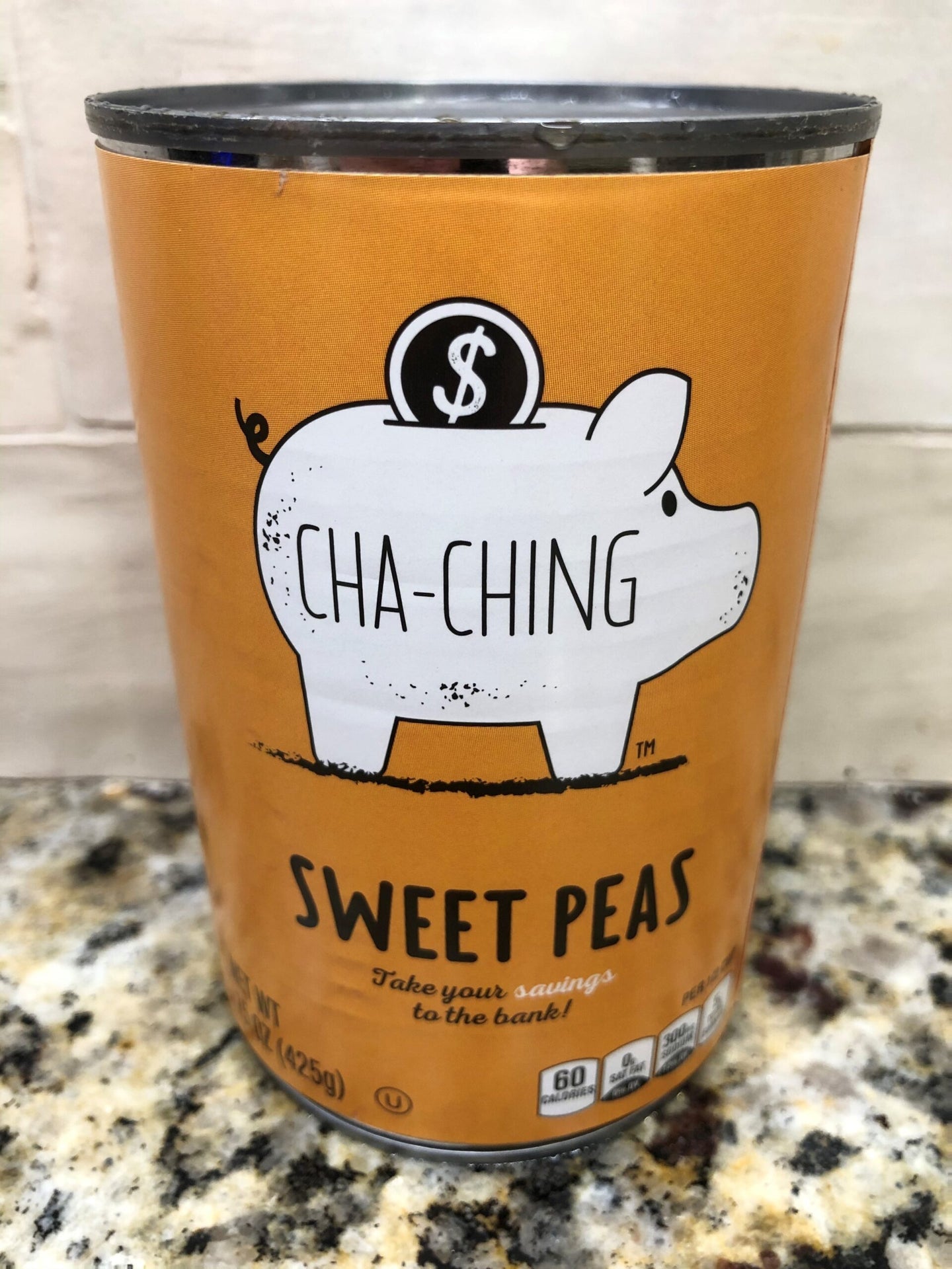 Cha Ching Sweet Peas, Cut, Can Take your savings to the bank!. Per 1/2 Cup: 60 calories; 0 g sat fat (0% DV); 300 mg sodium (13% DV); 5 g total sugars.