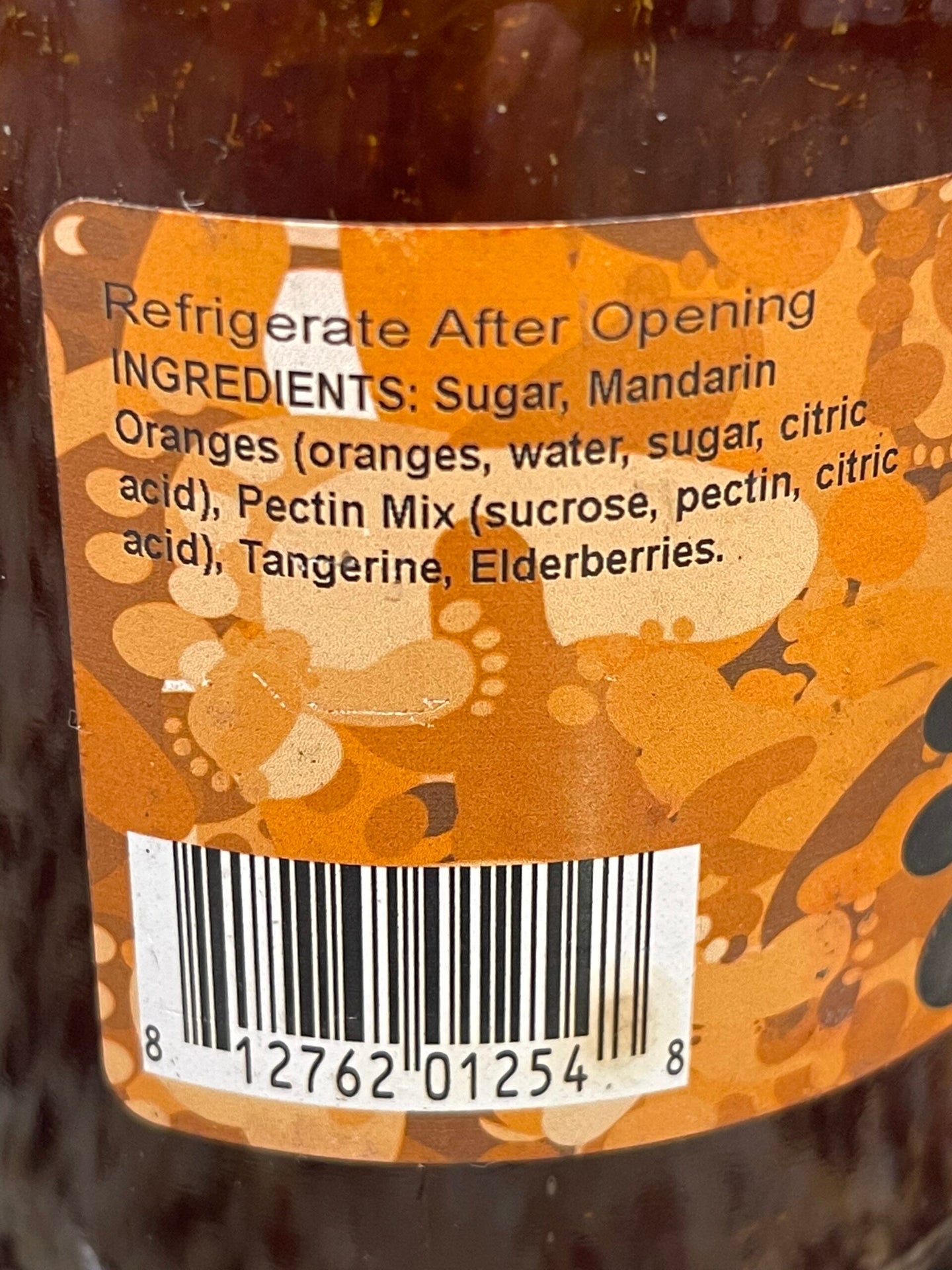 Tart, tangy, sweet and zesty this jam has Tangerine, Orange & Elderberry