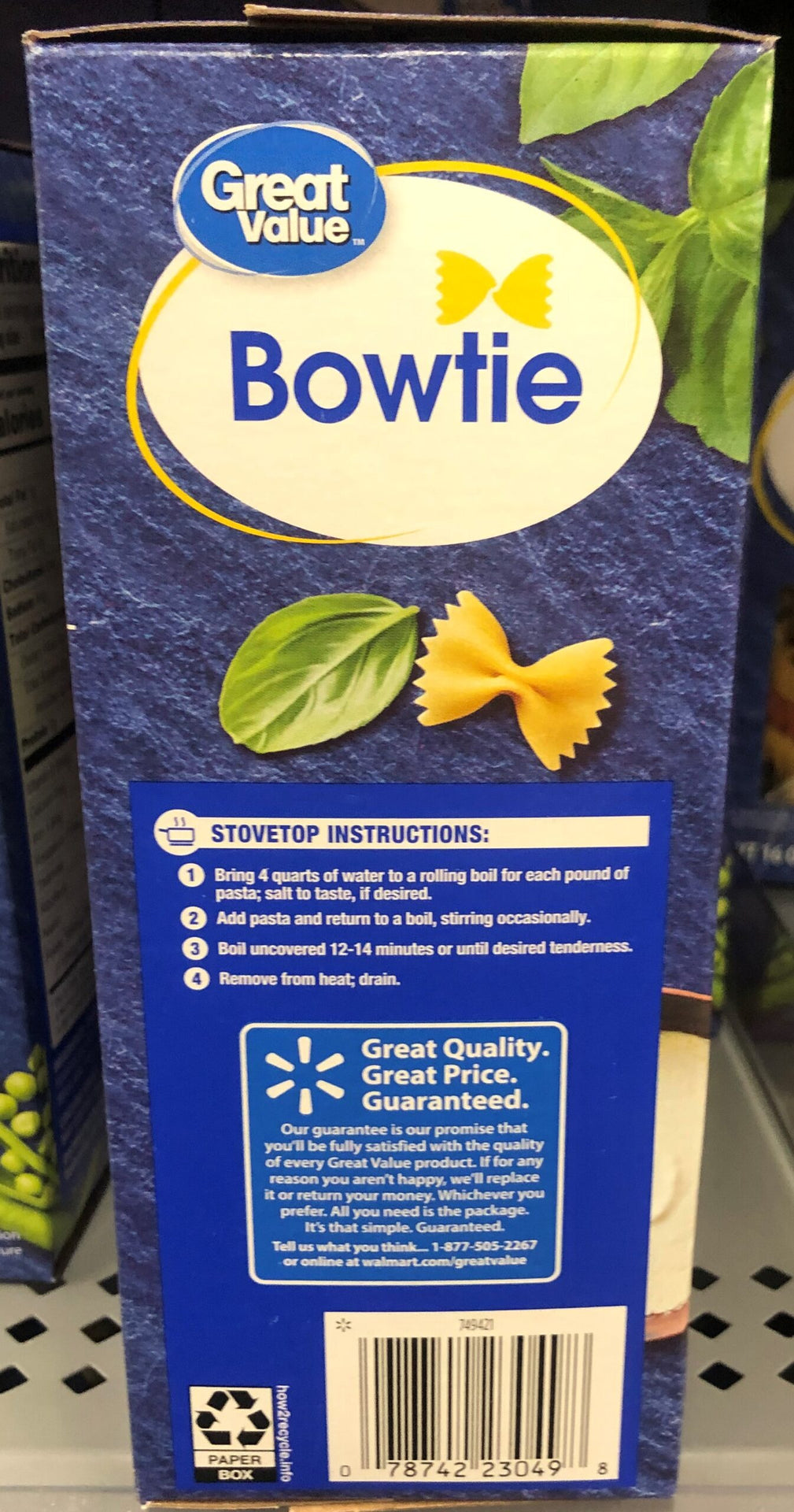 Great Value Bowties Pasta is a great addition to any wholesome meal. Boiling water brings this pasta to life, making it ready to eat with only a few steps of preparation. This pasta goes great with red sauce and meatballs, or pair it with a creamy Alfredo sauce and chicken. Make a savory one-pot pasta with spicy sausage in just 20 minutes and a few ingredients and wow your family with a delicious home-cooked meal that tastes like it came from a restaurant. However you prepare it, Great Value Bowties Pasta is a great addition to any family get together.