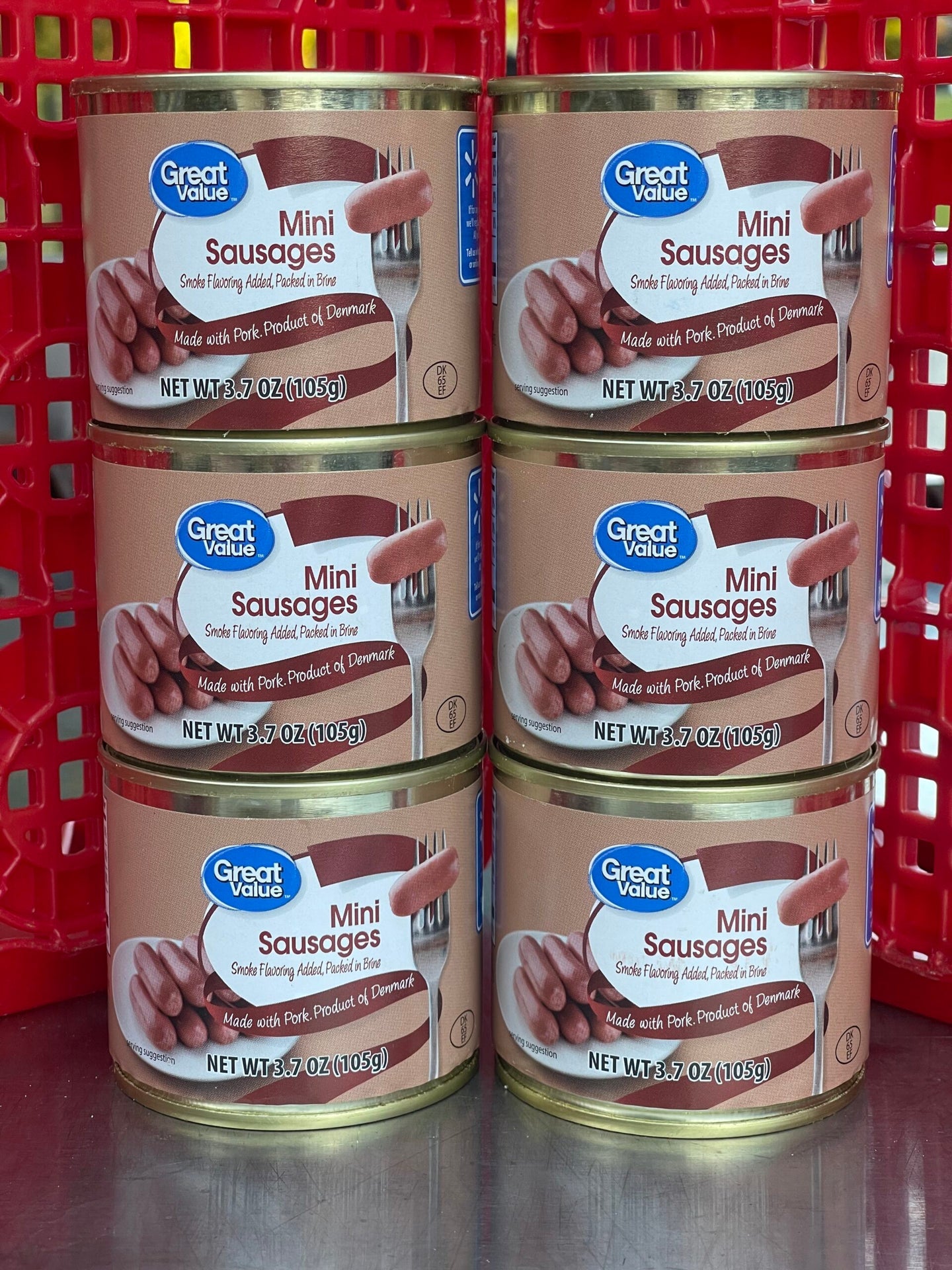 - 6 Big Cans Great Value Mini Sausages 3.7 oz Can Meat Chicken Pork Vien