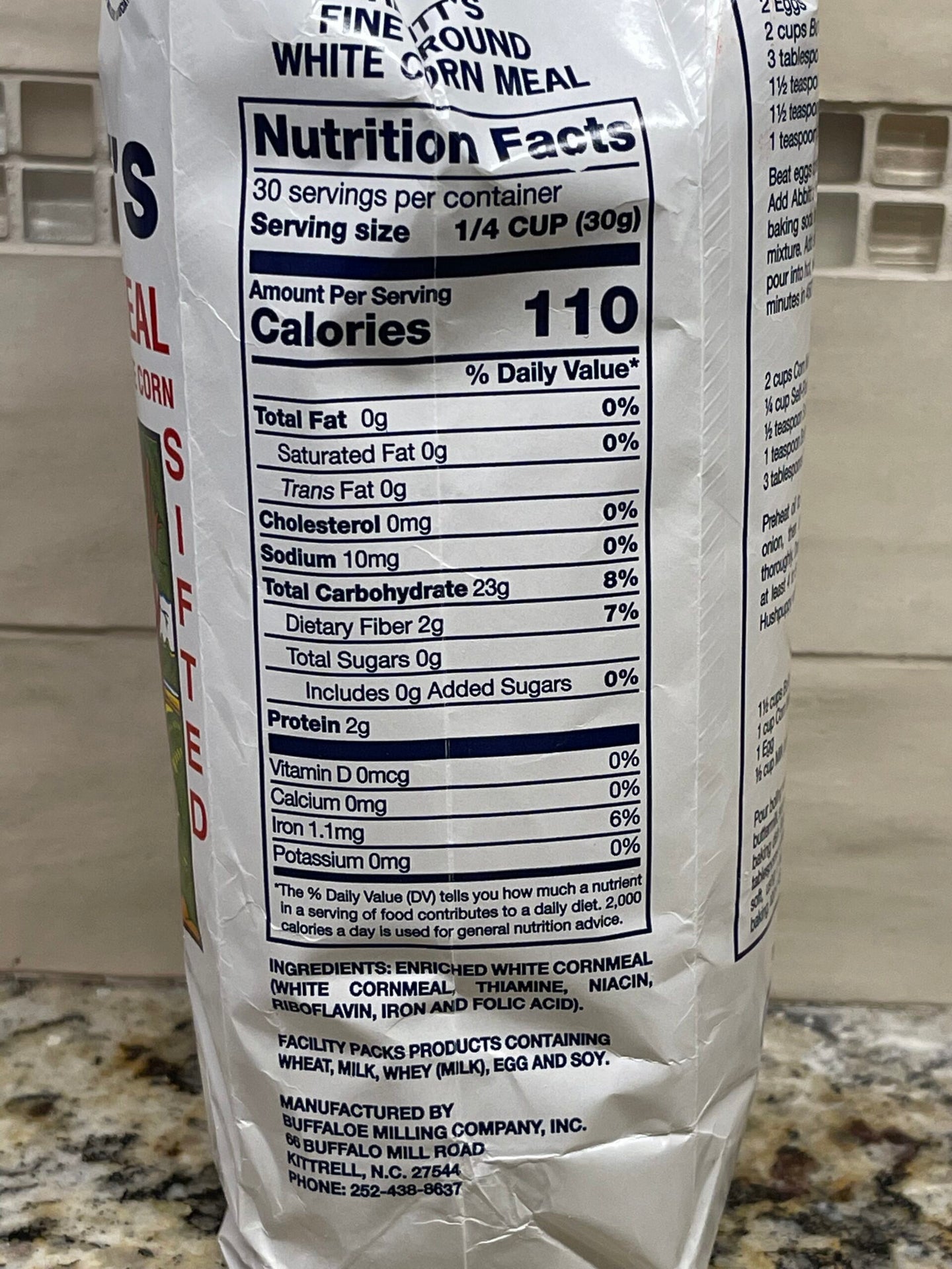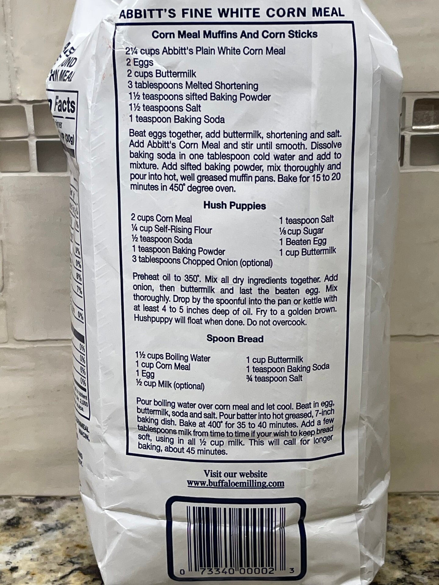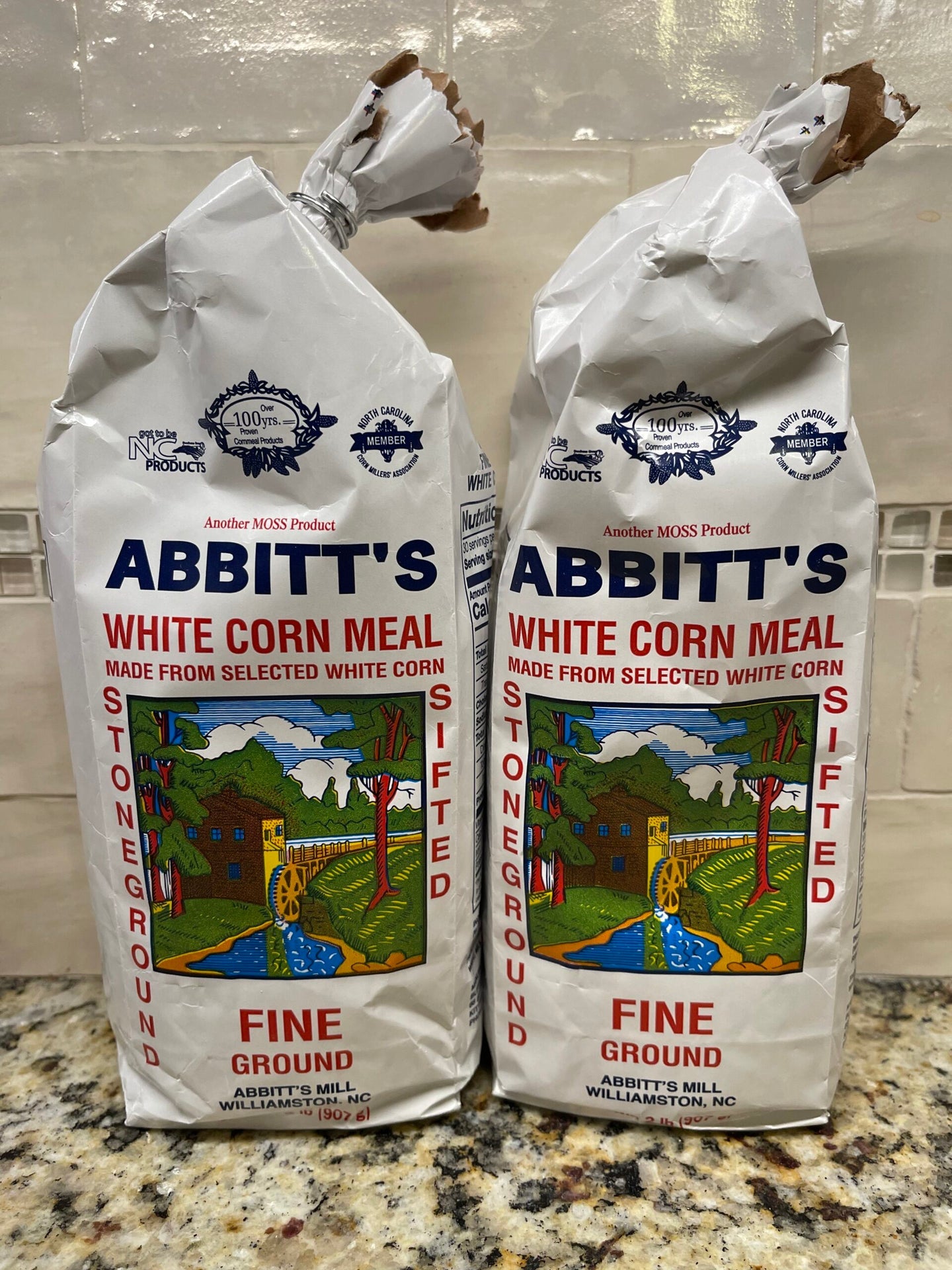 - 2 BAGS Abbitts Mills Fine Ground White Corn Meal 2 Lb Bag flour Sifted
