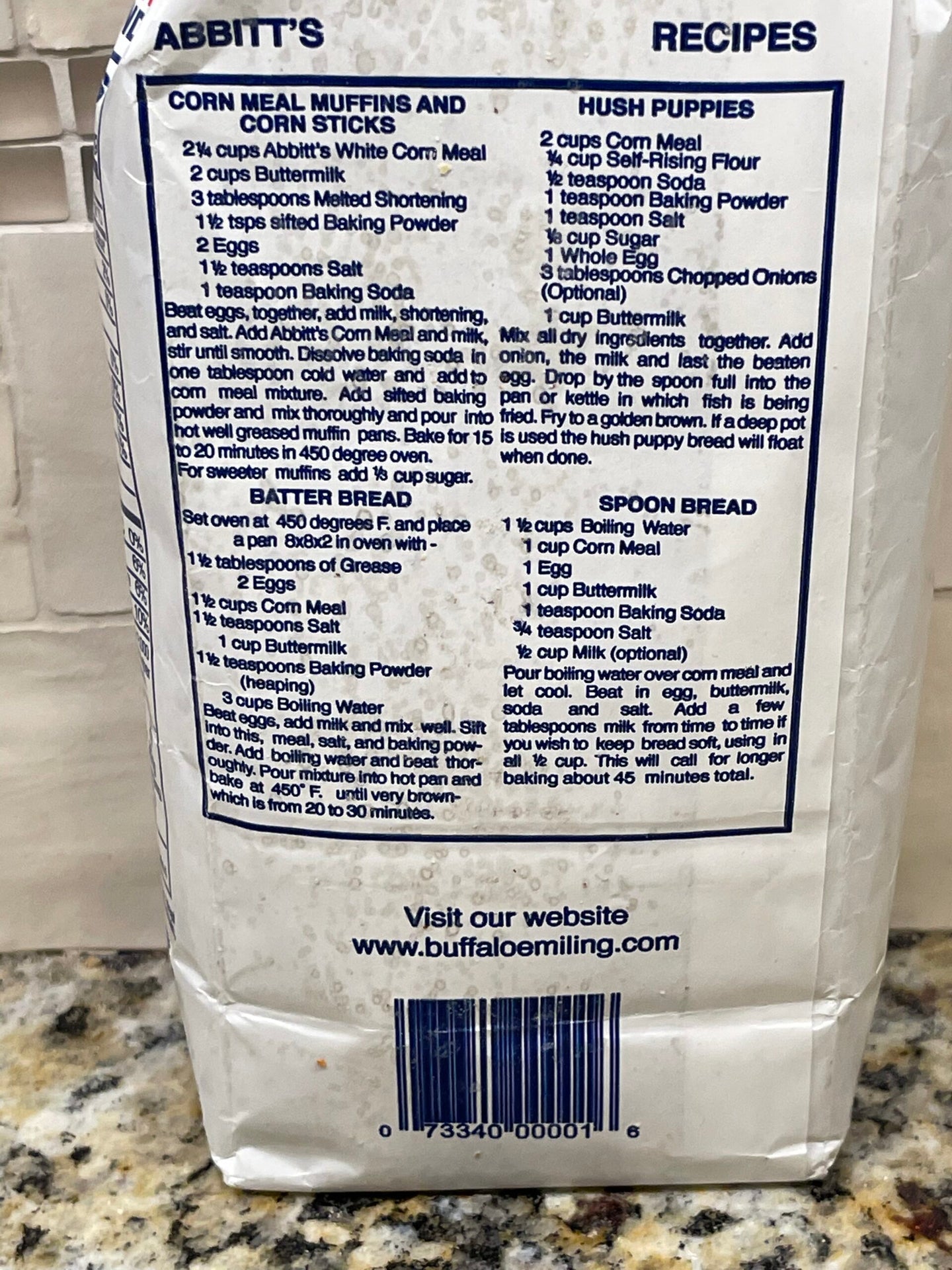 - 2 BAGS Abbitts Mills Medium Ground White Corn Meal 2 Lb Bag flour Unbo