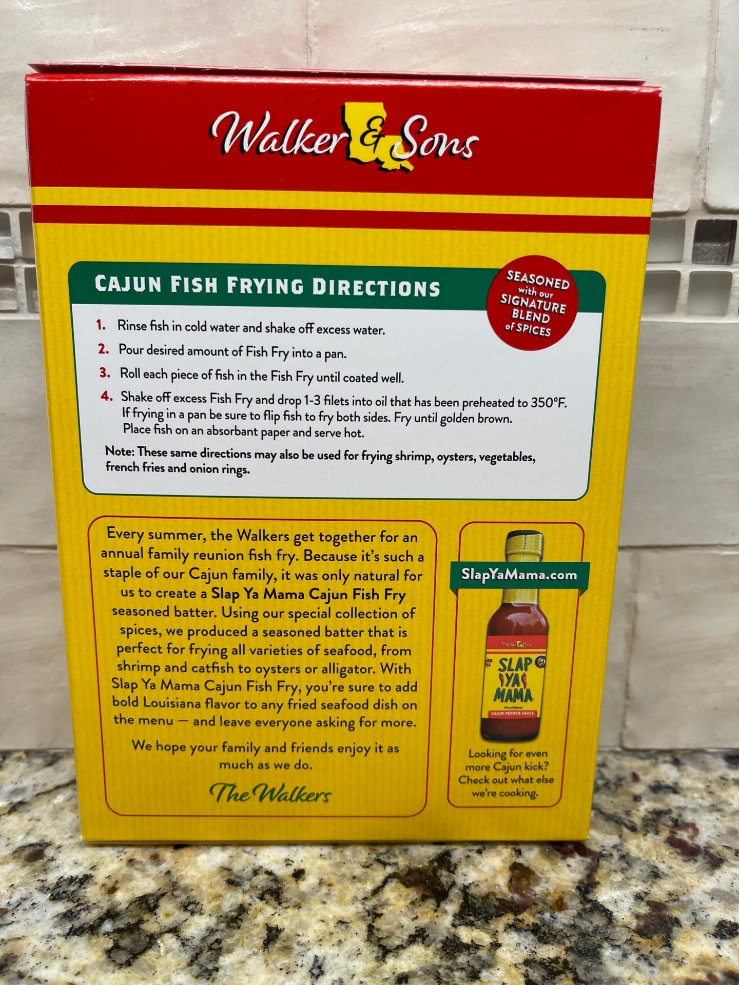 - Great on all seafood! Every June, the Walkers get together for a family reunion and a Cajun fish fry. So it was only natural that we create Slap Ya Mama Cajun Fish Fry for the event. Using our special blend of spices, we've produced a Cajun fish fry that is perfect for frying all varieties of seafood, from shrimp to catfish, oysters to alligator. Slap Ya Mama Cajun Fish Fry is sure to add a little Louisiana flavor to your fried seafood dishes and will leave your mouth watering for more. Hoping your family and friends enjoy it as much as we do. Thank You, - The Walkers. Need a little more spice in ya life? No MSG. Certified Cajun: A product of Louisiana.