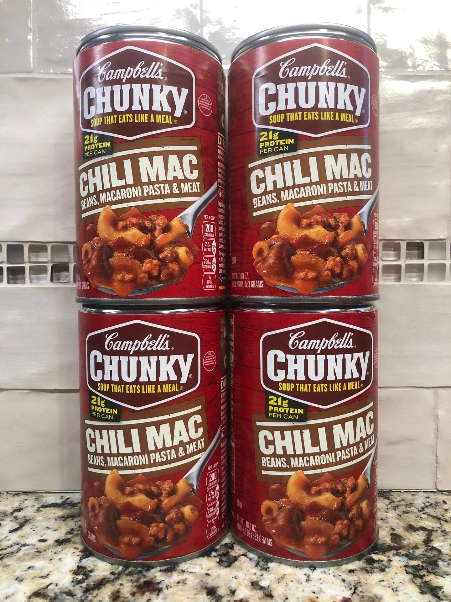 Tackle hunger with the bold, flavor-packed Campbell's Chunky Chili Mac. Two comfort food favorites collide in one hearty bowl: loaded beef-and-bean chili and macaroni tossed with tomatoes. Rich and extremely delicious, dig into this ready to eat soup and fuel your everyday hustle. Campbell's Chunky Chili Mac Soup-Soup That Eats Like a Meal. When you need food that works as hard as you do, grab Campbell's Chunky soups. Our big flavor, big pieces and bold ingredients will help you fight back when NFL-sized hunger hits. Available in hearty varieties and tastes that don’t stop, Campbell's Chunky soups fill you up and fuel your everyday hustle