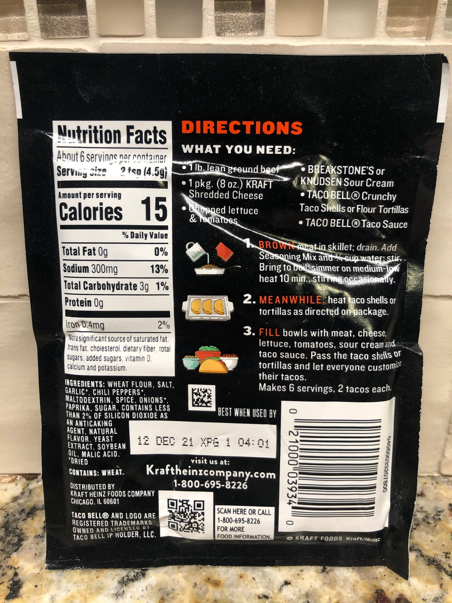- One 1 oz. packet of Taco Bell Original Taco Seasoning Mix