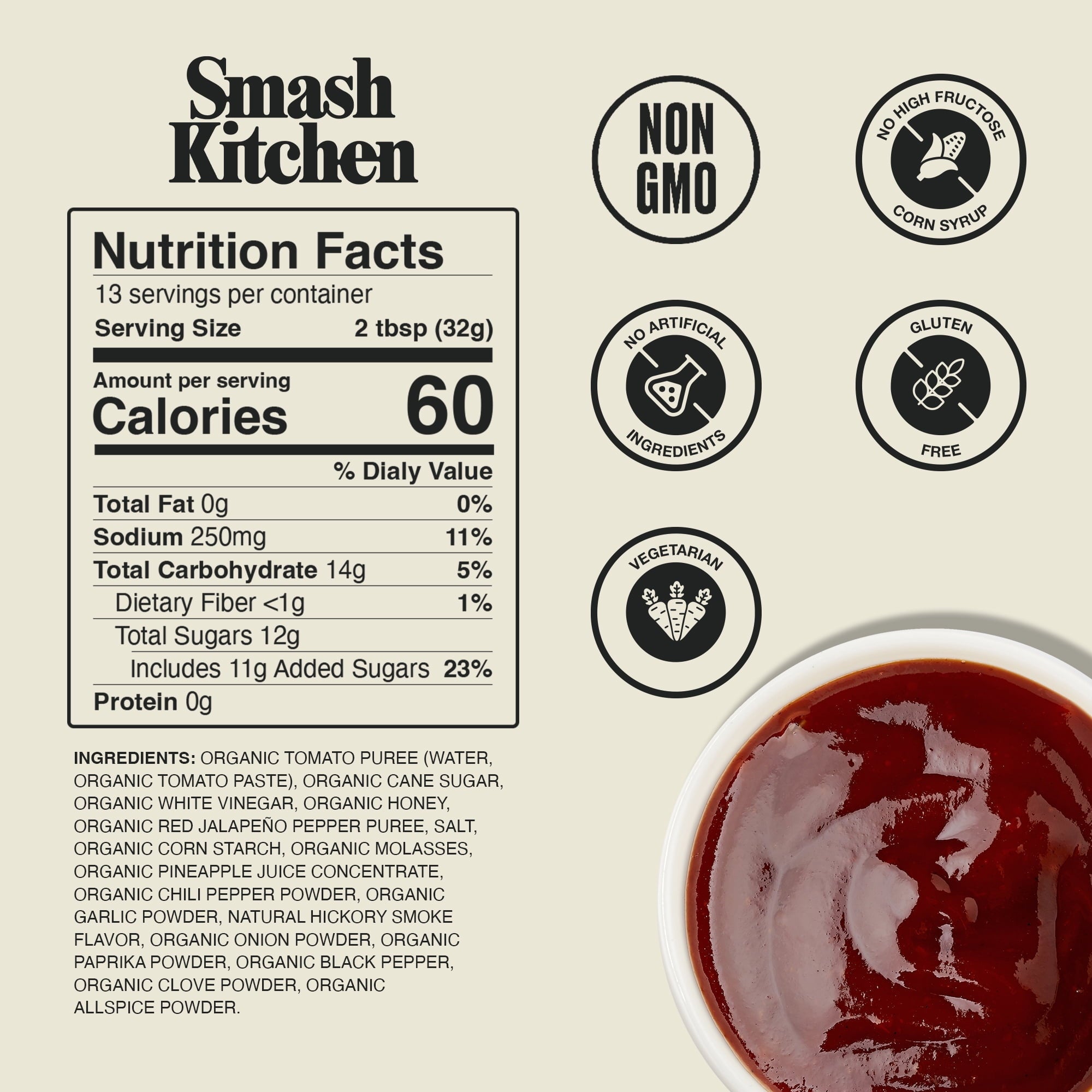 - 15 oz bottle of Smash Kitchen Organic Hot Honey BBQ Sauce