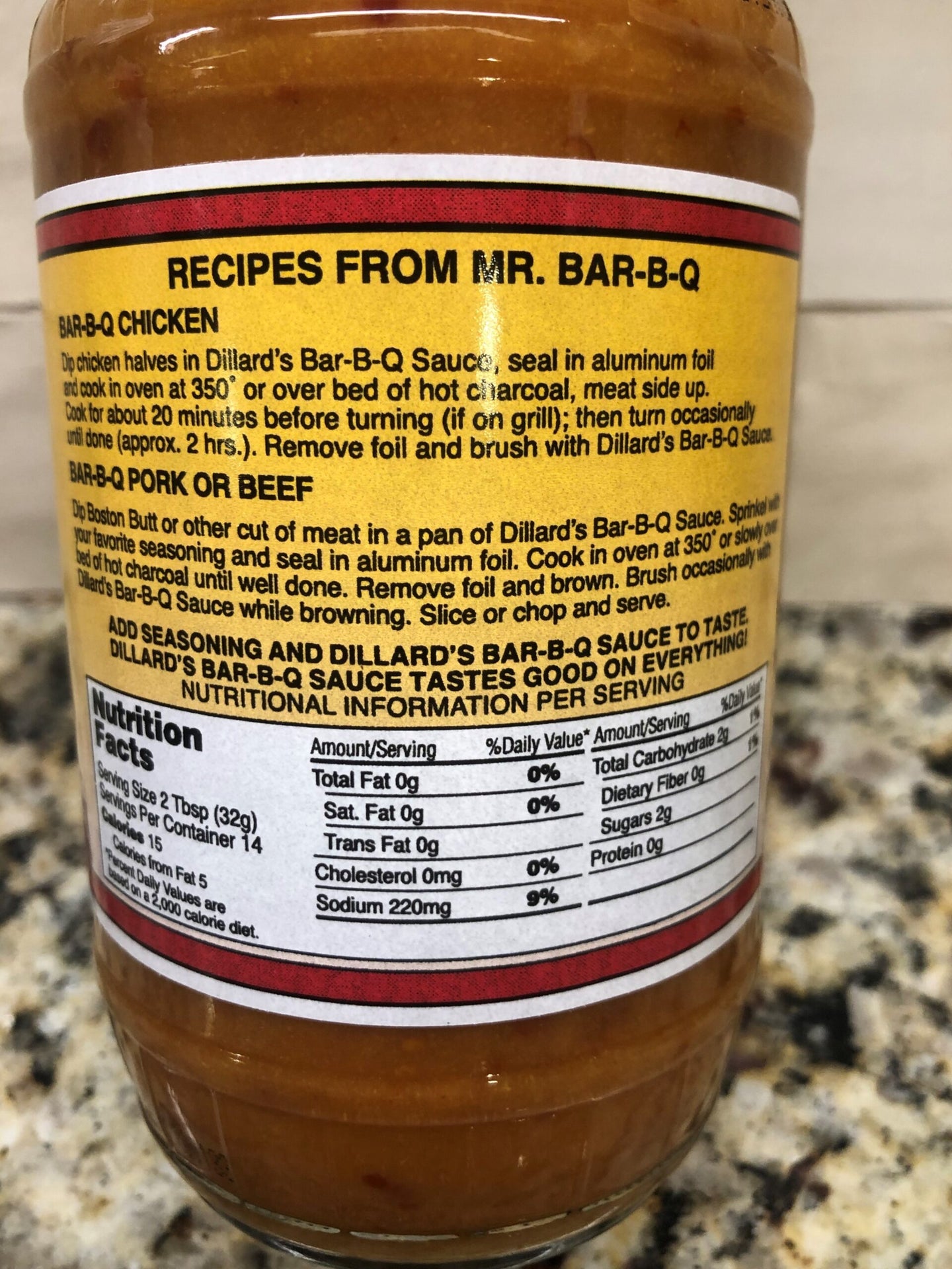 This is the sauce that has made Dillard's Bar-B-Q Restaurant in Durham, North Carolina, famous for its pork BBQ. This vinegar and tomato-based sauce also works wonders with chicken and beef. In fact, we think Dillard's Bar-B-Q Sauce tastes pretty darn good on just about anything.