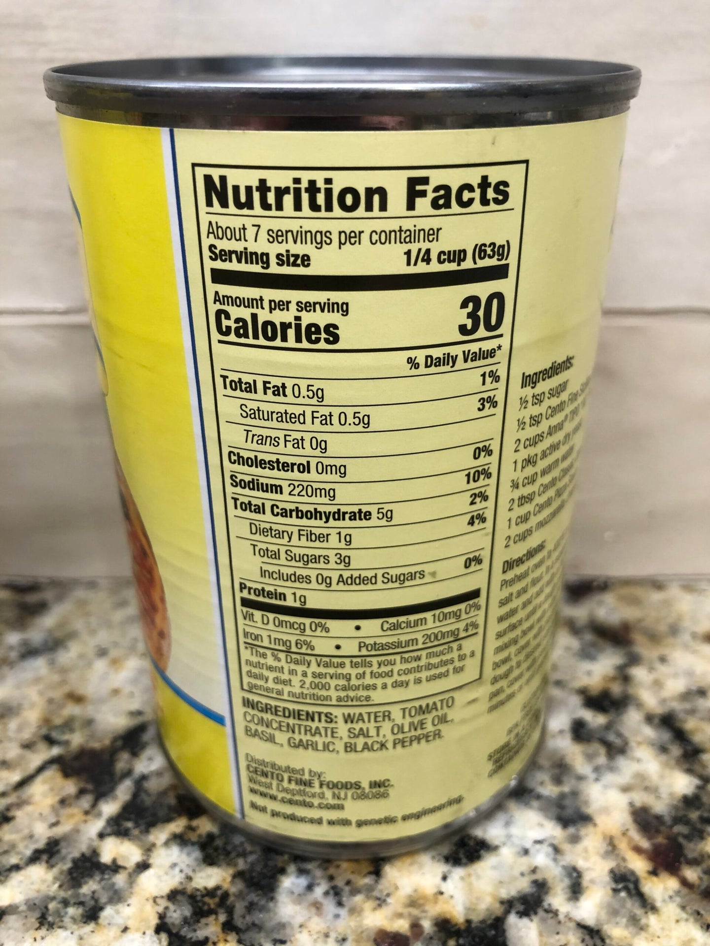 Add a burst of authentic flavor to some of your favorite pizza recipes with the Cento Pizza Sauce. It contains all-natural ingredients, including tomato concentrate, olive oil, basil, salt, black pepper and garlic powder. Low in calories, this canned pizza sauce is a healthy source of vitamins A and C, iron and dietary fiber. Explore other foods from Cento, such as crushed tomatoes, petite diced tomatoes, capers, clam sauce, shelled baby clams, anchovies, artichoke hearts, olive oil and more (each sold separately).