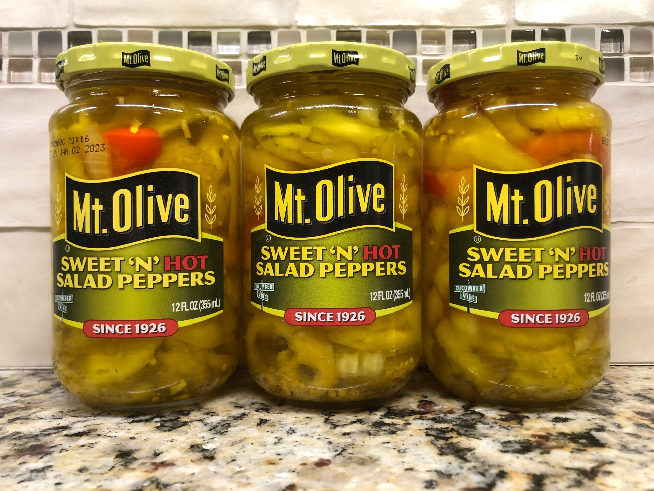 3 JARS Mount Olive Sweet 'N' Hot Salad Peppers 12 oz Mt Pickle 3 JARS Mount Olive Sweet 'N' Hot Salad Peppers 12 oz Mt Pickle 3 JARS Mount Olive Sweet 'N' Hot Salad Peppers 12 oz Mt Pickle 3 JARS Mount Olive Sweet 'N' Hot Salad Peppers 12 oz Mt Pickle 3 JARS Mount Olive Sweet 'N' Hot Salad Peppers 12 oz Mt Pickle