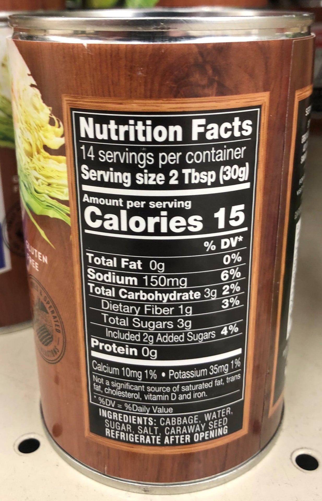 Ingredients: Cabbage, water, sugar, salt, caraway seeds