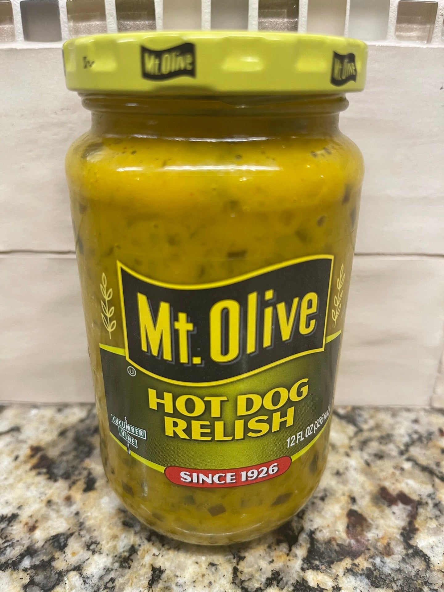 Try it once and you'll never want another hot dog without it! This is Mount Olive mustard pickle relish and it is absolutely delicious.