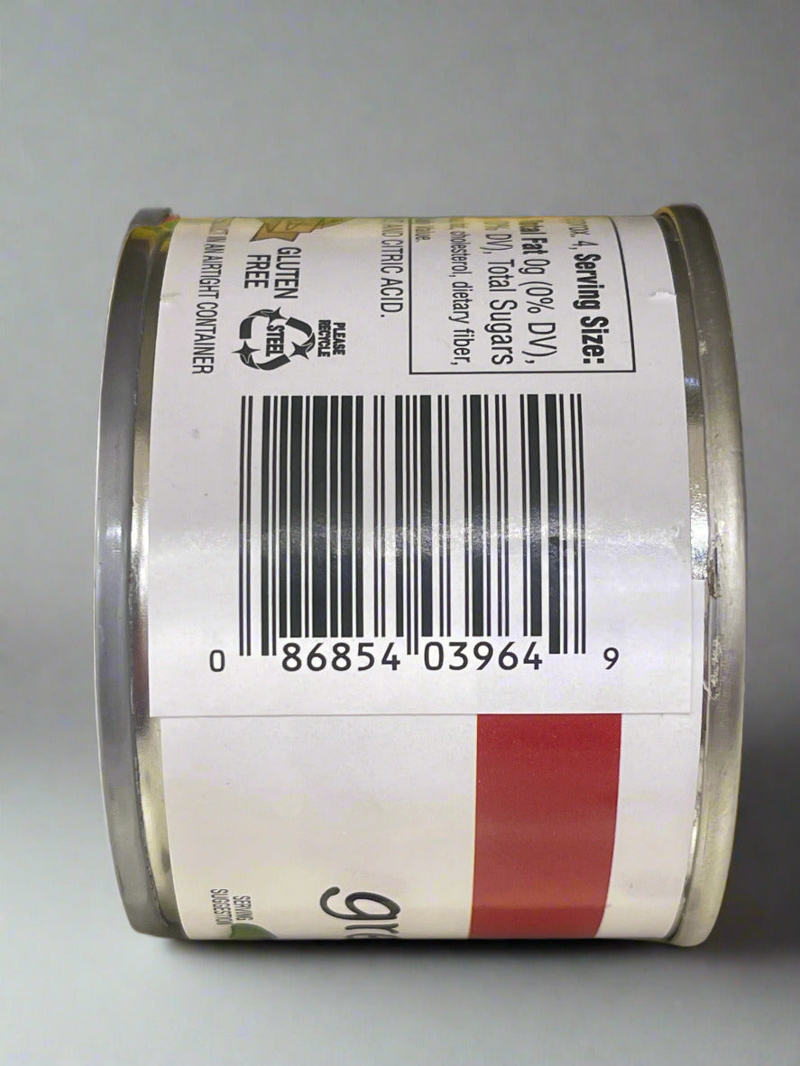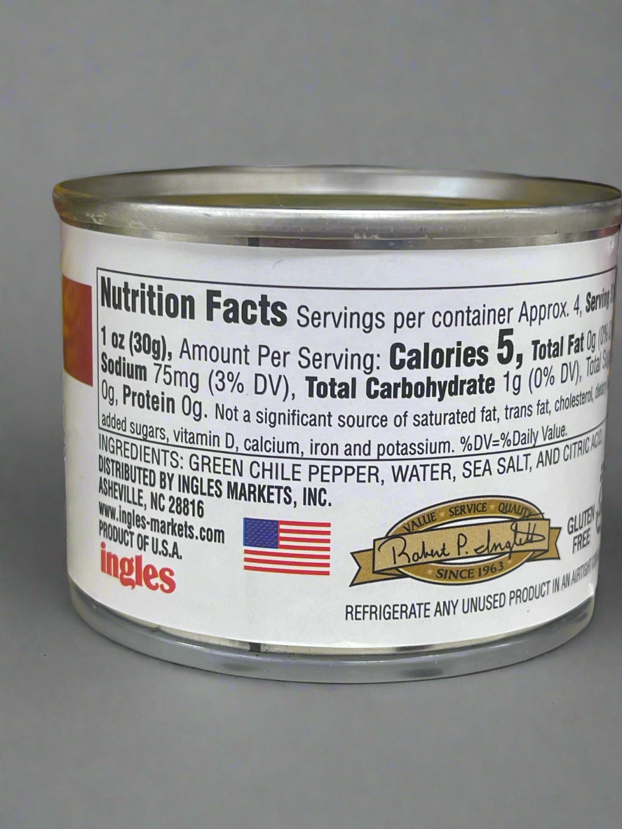 Ingredients: GREEN CHILES, WATER, SALT, CITRIC ACID, CALCIUM CHLORIDE.