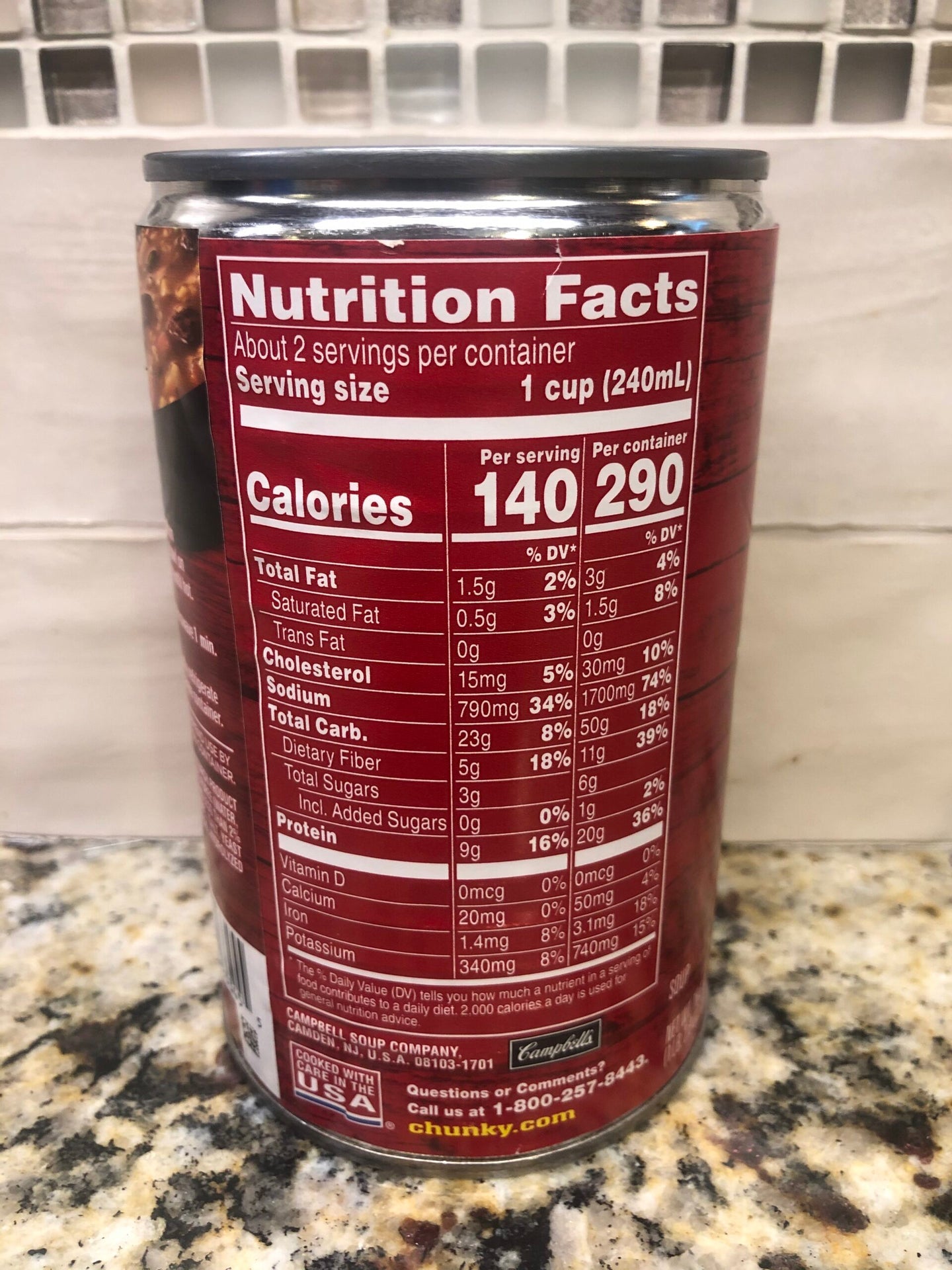Ingredients: Water, Beef Stock, Seasoned Beef-Beef Broth, and Modified Food Starch Product (Beef, Beef Broth, Salt, Modified Food Starch, Sodium Phosphate, Spice), Tomato Puree (Water, Tomato Paste), Carrots, Potatoes, Toasted Barley, Celery, Peas, Corn, Contains Less than 2% of: Modified Food Starch, Dehydrated Onions, Sugar, Monosodium Glutamate, Salt, Yeast Extract, Caramel Color, Lactic Acid, Spice, Hydrolyzed Soy Protein, Hydrolyzed Wheat Gluten, Flavoring, Onion Extract.