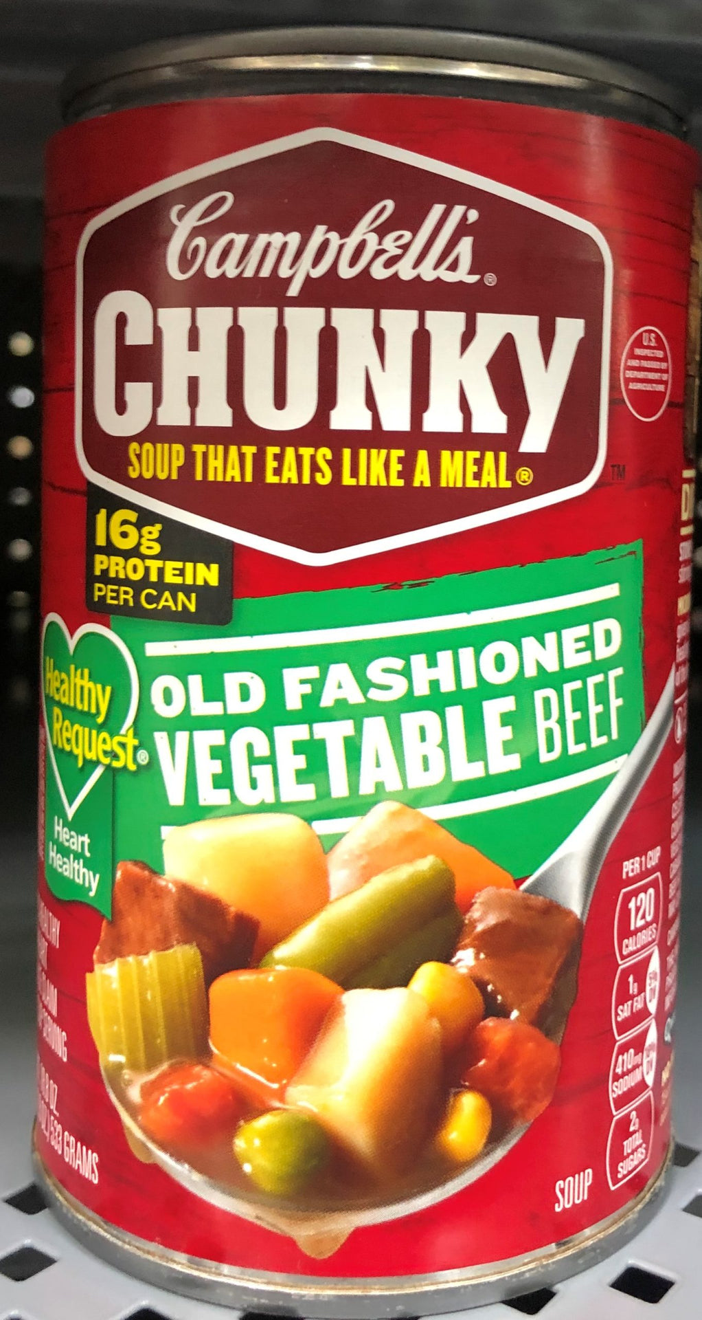Savor the soul-warming, country-style flavors of Campbell’s Chunky Old-Fashioned Vegetable Beef Soup. Every spoonful of this ready to eat soup overflows with flavor-packed hearty veggies like carrots, potatoes, celery, corn and peas, and big pieces of tender lean beef. Enjoy a steamy bowl and fuel your everyday hustle. Campbell's Chunky Old Fashioned Vegetable Beef Soup-Soup That Eats Like a Meal. When you need food that works as hard as you do, grab Campbell's Chunky soups. Our big flavor, big pieces and bold ingredients will help you fight back when NFL-sized hunger hits. Available in hearty varieties and tastes that don’t stop, Campbell's Chunky soups fill you up and fuel your everyday hustle.