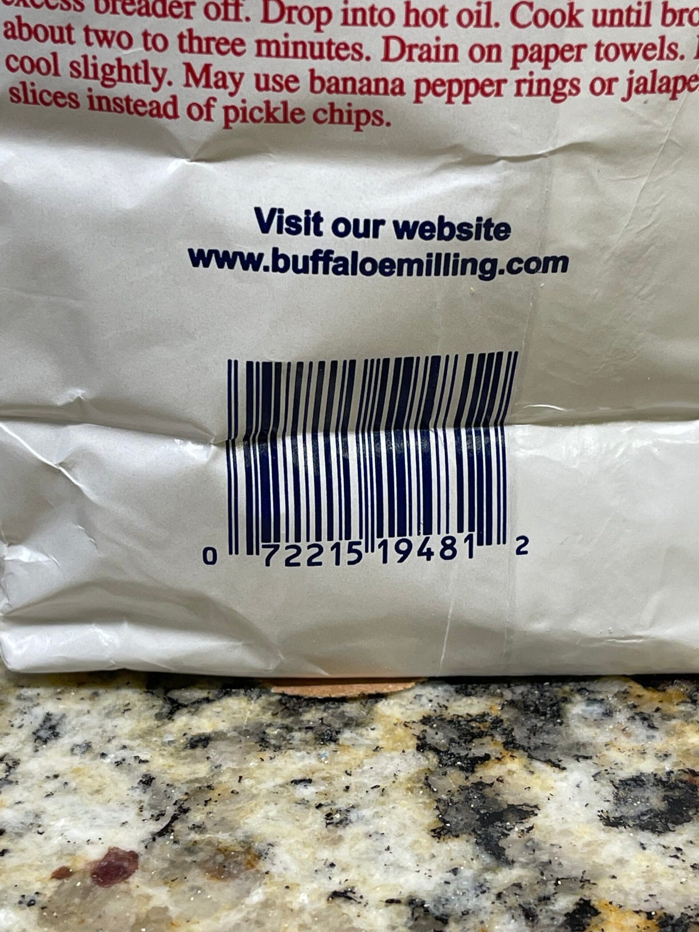 Ingredients: Yellow Corn Flour, Plain Wheat Flour, Salt, Cracker Meal, Powdered Milk, Eggs, Whey, Monosodium Glutamate, Spices, Onions, Sodium Bicarbonate, and Sodium Aluminum Phosphate.