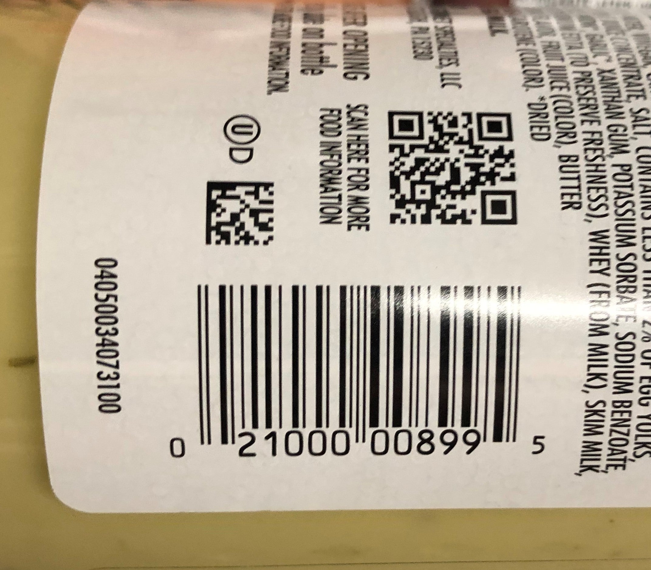 Ingredients: Water, Vinegar, Canola Oil, Apple Cider Vinegar, Sugar, Modified Food Starch, Lime Juice Concentrate, Salt, Contains Less Than 2% Of Egg Yolks, Avocado Puree, Onion*, Garlic*, Xanthan Gum, Potassium Sorbate, Sodium Benzoate, And Calcium Disodium Edta (To Preserve Freshness), Whey (From Milk), Skim Milk, Parsley*, Natural Flavor, Fruit Juice (Color), Butter Extractives, Beta Carotene (Color). *Dried