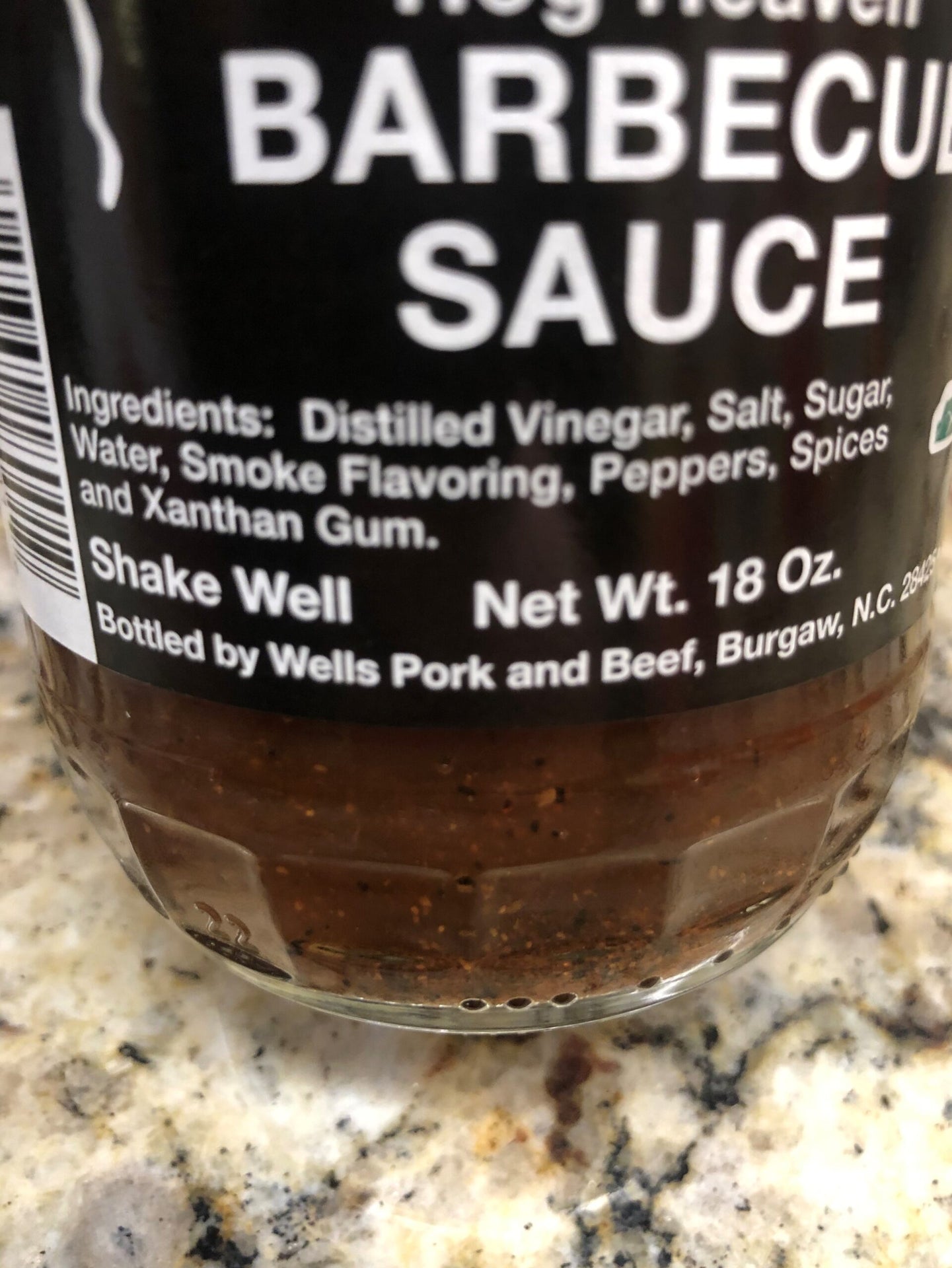 Wells Hog Heaven Barbecue Sauce, 18oz.: This eastern NC sauce from Wells Pork & Beef in Burgaw, NC, is the real deal, folks! Wells Hog Heaven Barbecue Sauce is also our best-selling BBQ sauce of all time. There are no tomatoes in this vinegar-based sauce, but plenty of flavor for your pulled or chopped pork BBQ. You can also splash Wells Hog Heaven Barbecue Sauce on collards, green beans, hushpuppies or french fries for added zip, or use it as a marinade for chicken or meat. If you've always wanted to try a genuine Eastern NC vinegar barbecue sauce, Wells Hog Heaven BBQ Sauce is an excellent choice.