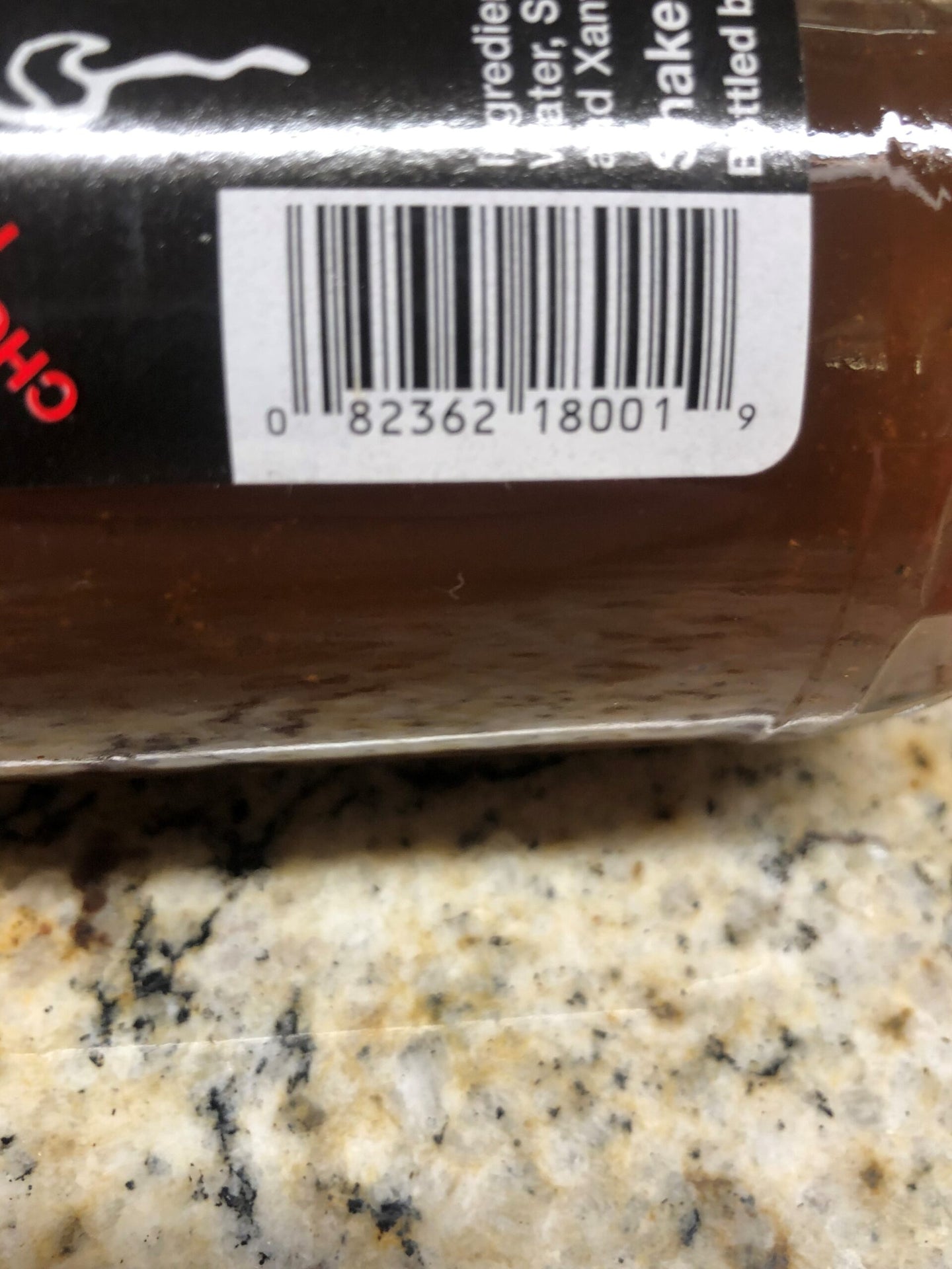 Ingredients : Distilled vinegar, salt, sugar, water, smoke flavoring, peppers, spices, xanthan gum