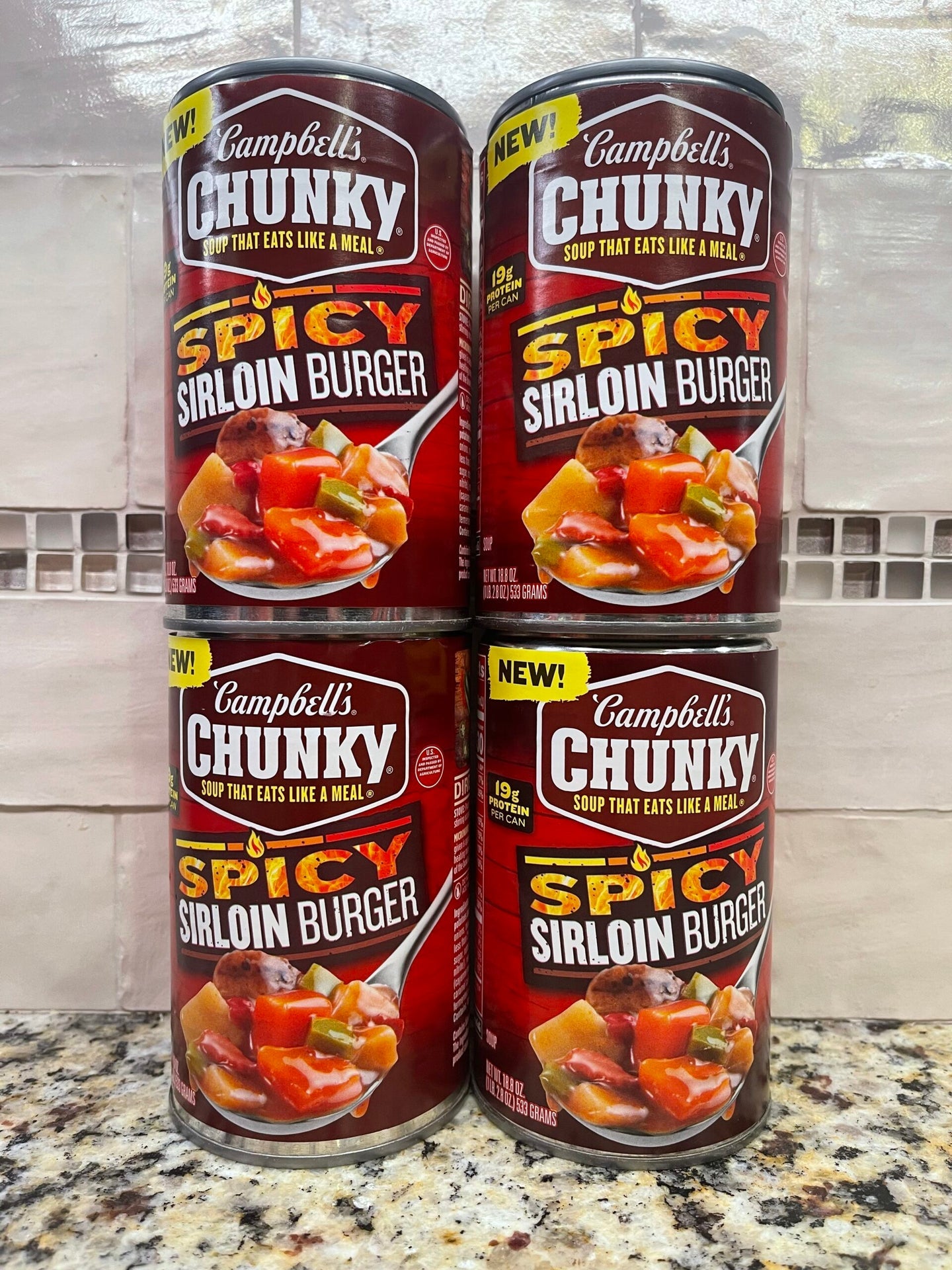 4 Campbell's CHUNKY Spicy Sirloin Burger Soup 18.8 oz Can 4 Campbell's CHUNKY Spicy Sirloin Burger Soup 18.8 oz Can 4 Campbell's CHUNKY Spicy Sirloin Burger Soup 18.8 oz Can 4 Campbell's CHUNKY Spicy Sirloin Burger Soup 18.8 oz Can 4 Campbell's CHUNKY Spicy Sirloin Burger Soup 18.8 oz Can