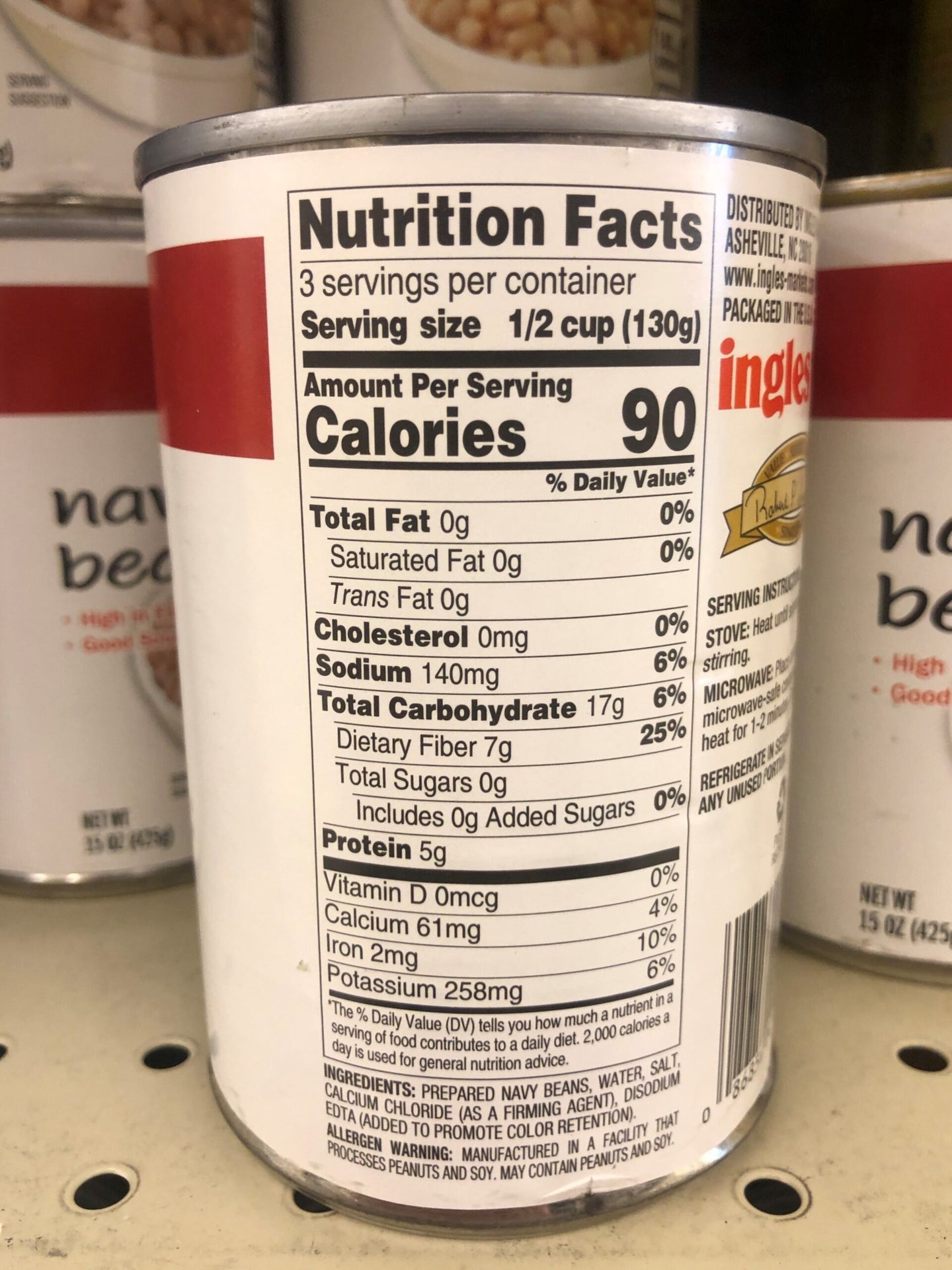 Ingredients: PREPARED WHITE BEANS, WATER, SALT, DISODIUM EDTA ADDED TO PROMOTE COLOR RETENTION.