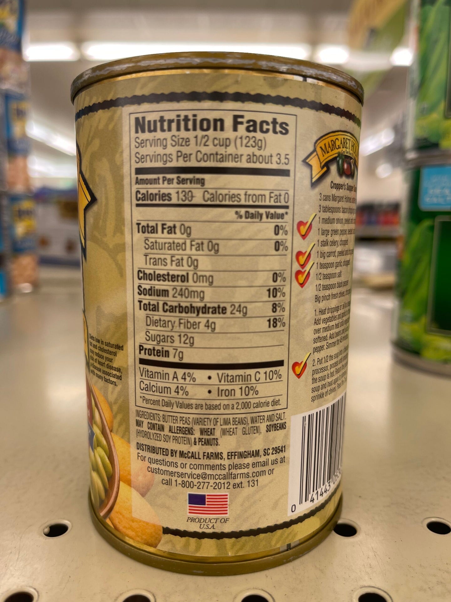 A delicate shell pea somewhere between a fresh blackeye pea and a butter bean, Margaret Holmes Butter Peas are a Southern delicacy. These flavorful peas are great as a side dish or as part of a variety of recipes. Prepared with the perfect blend of seasoning, Margaret Holmes Butter Peas taste great right out of the can. Just heat-n-serve!