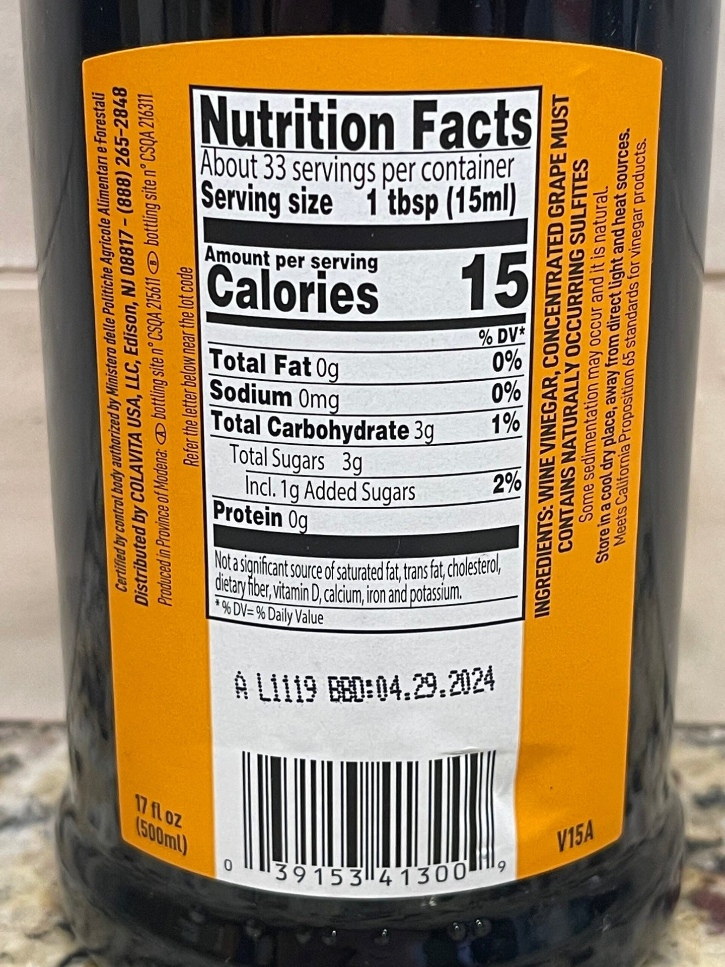 Colavita Balsamic Vinegar of Modena IGP is certified product of Modena where the tradition of balsamic vinegar has been perfected over generations. The IGP designation awarded by the Italian government certifies that Colavita Balsamic Vinegar is a true product of Modena, Italy and that it is prepared according to stringent and traditional methods.Our balsamic vinegar is prepared by cooking the juice of Trebbiano grapes and then maturing them in cherry and walnut barrels. Over time, the vinegar reduces naturally. The result is a true “riserva” quality balsamic vinegar containing complex flavor notes such as berries, vanilla, and grapes.