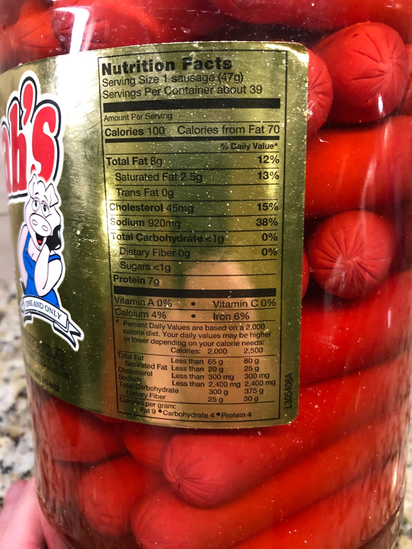 1 Gallon Jar Hannah Pickled Pork Sausage Red Hots Wieners 4lbs 1 Gallon Jar Hannah Pickled Pork Sausage Red Hots Wieners 4lbs 1 Gallon Jar Hannah Pickled Pork Sausage Red Hots Wieners 4lbs