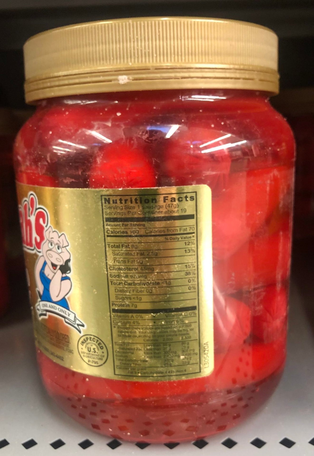 1 Quart Jar of Hannah Pickled Pork Sausage Red Hots Wieners