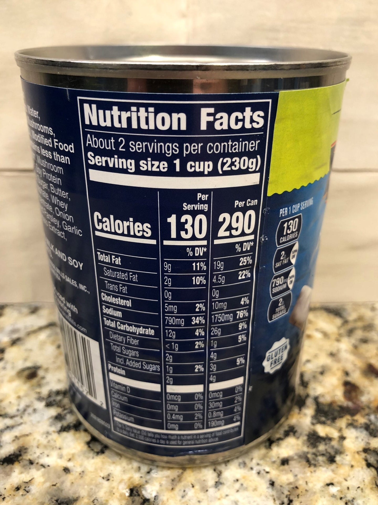 Ingredients: WATER, PORTABELLA MUSHROOMS, SOYBEAN OIL, MODIFIED FOOD STARCH. CONTAINS LESS THAN 2% OF: CREAM, MUSHROOM EXTRACT, SALT, SOY PROTEIN CONCENTRATE, SUGAR, BUTTER, SODIUM PHOSPHATE, WHEY PROTEIN CONCENTRATE, ONION POWDER, DRIED PARSLEY, GARLIC POWDER, TOMATO EXTRACT, SPICE.