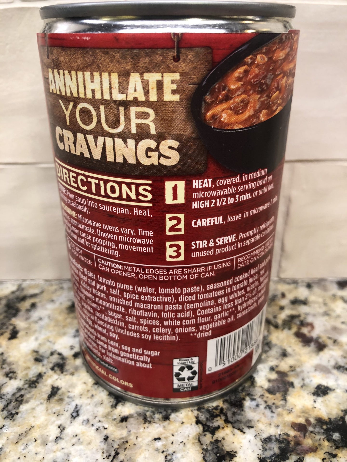 - READY TO EAT SOUP: A bold soup that combines beef-and-bean chili with hearty pasta with no artificial colors added