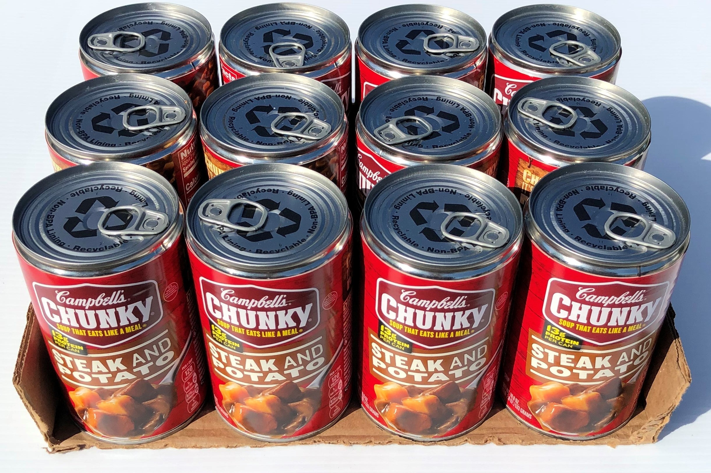 - 12 Campbell's CHUNKY Steak & Potato Soup 18.8 oz Cans