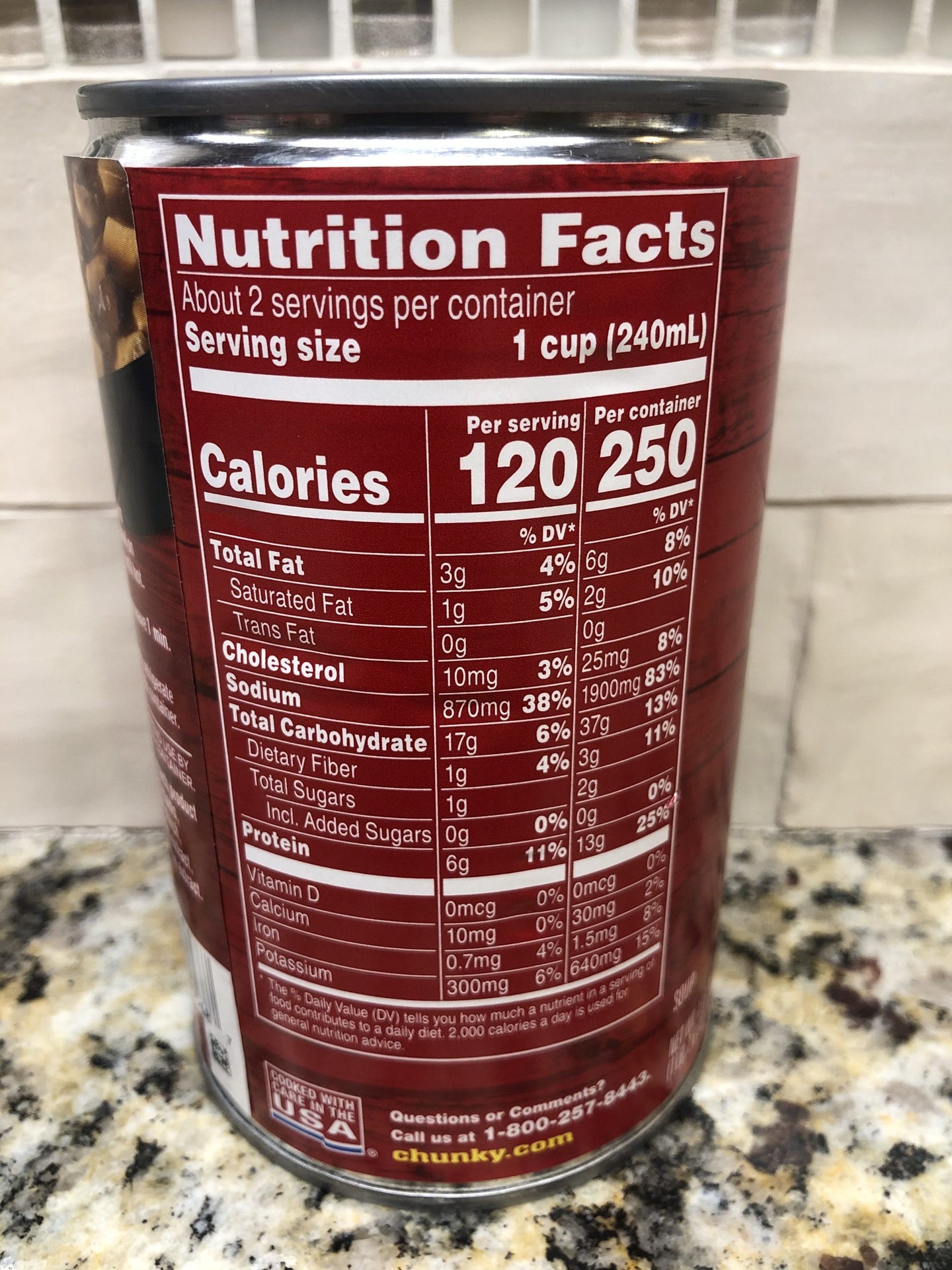 Campbell's Chunky Steak & Potato Soup will warm your soul as you dive into hearty spoonfuls brimming with tender potatoes and beef in a comforting broth. Simmered and seasoned to perfection, our savory recipe for this ready to eat soup is capable of fueling your everyday hustle. Campbell's Chunky Steak & Potato Soup-Soup That Eats Like a Meal. When you need food that works as hard as you do, grab Campbell's Chunky soups. Our big flavor, big pieces and bold ingredients will help you fight back when NFL-sized hunger hits. Available in hearty varieties and tastes that don’t stop, Campbell's Chunky soups fill you up and fuel your everyday hustle.