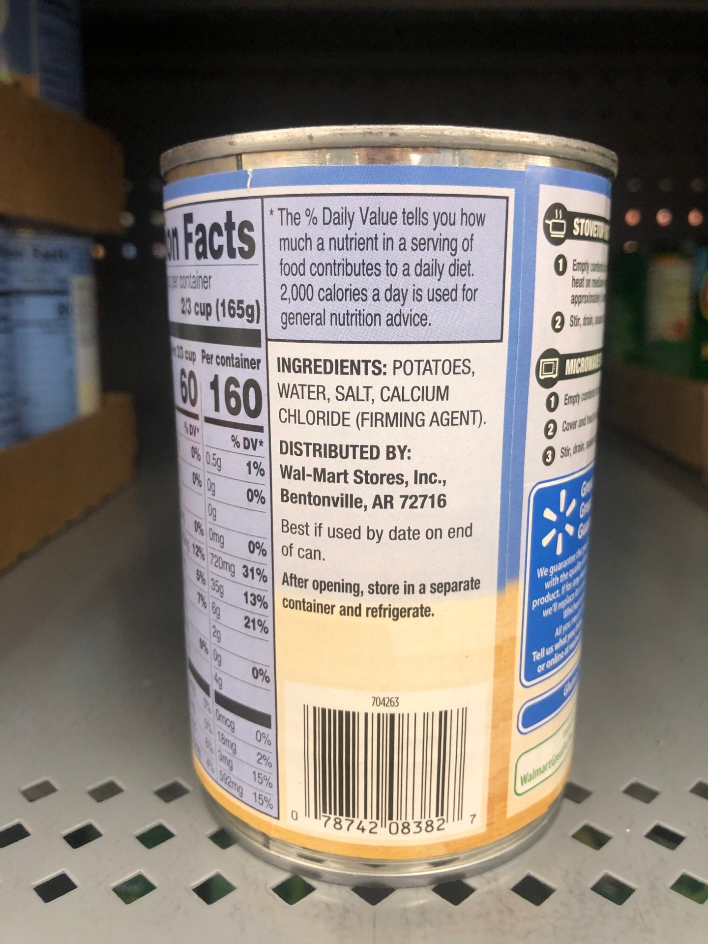 Ingredients: POTATOES, WATER, SALT, CALCIUM CHLORIDE (FIRMING AGENT).