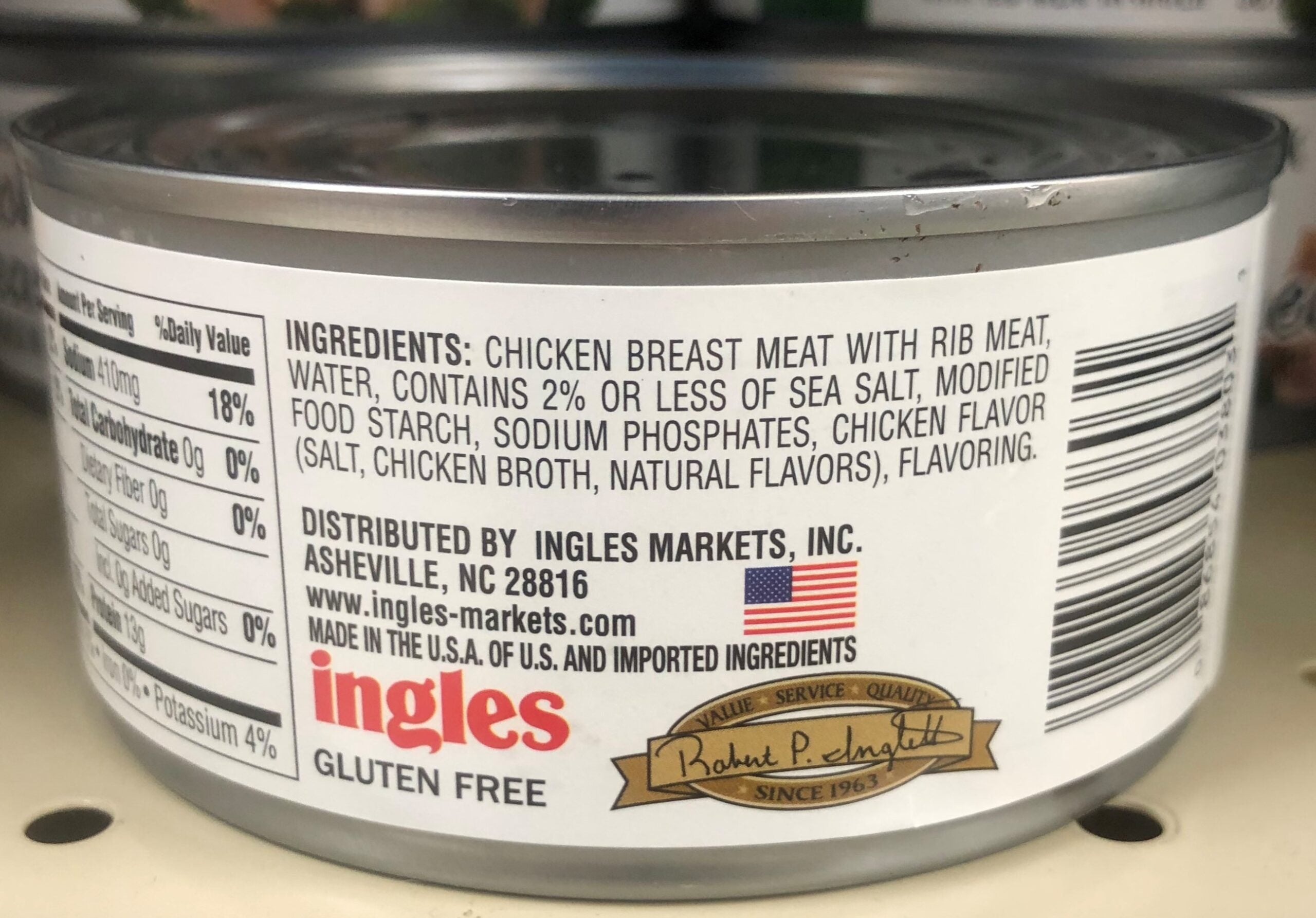 Chicken breast with rib meat,water contains less than 2% of modified food starch, salt, sodium phosphate