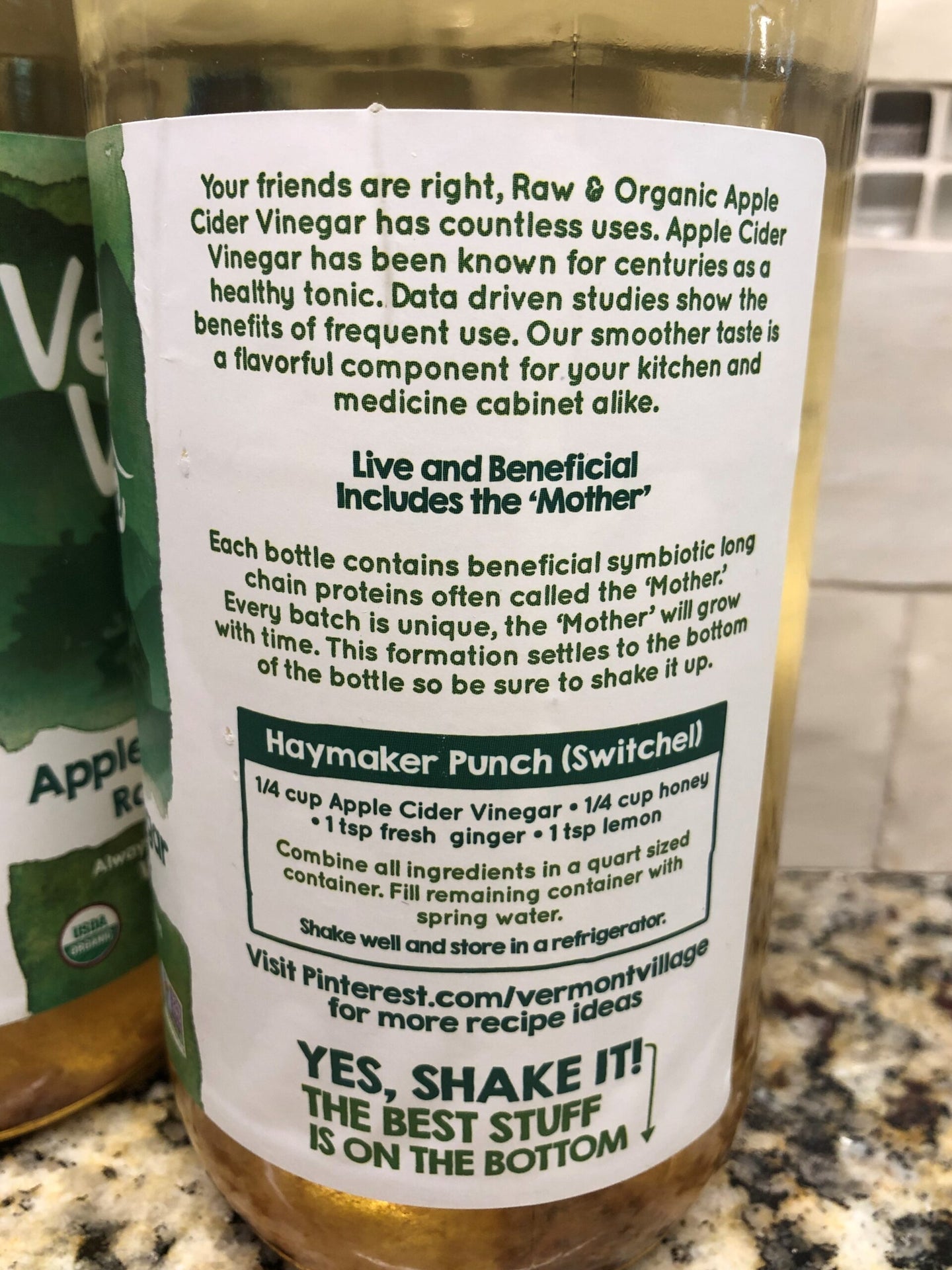 Each bottle of Vermont Village's raw apple cider vinegar contains beneficial symbiotic yeasts and long chain proteins called "the Mother." The vinegar is made in small batches using organic apples and time honored traditions. The result is a raw and unfiltered vinegar that is gluten-free and can be used in the kitchen for both health and flavor.
