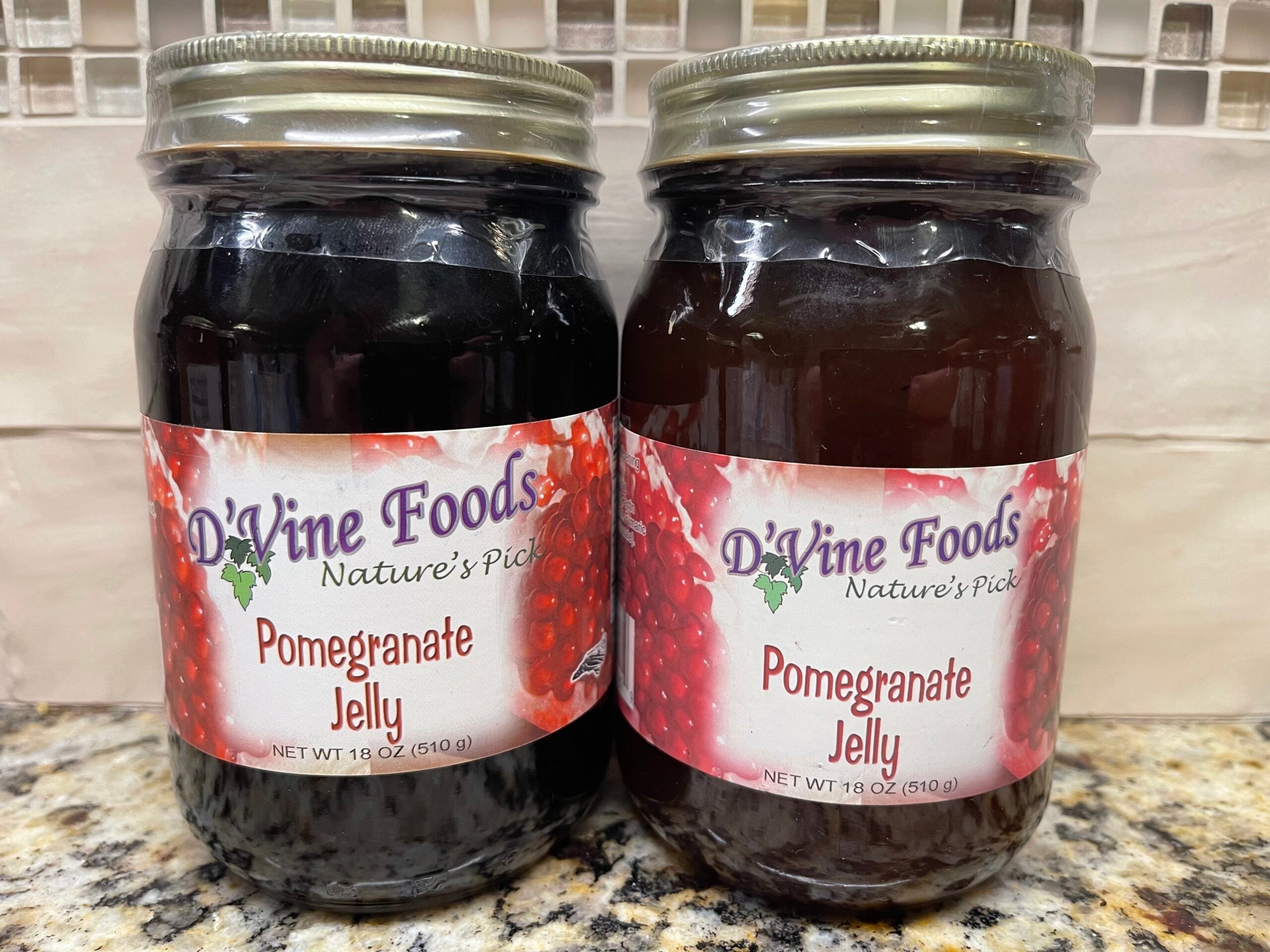 - 2 Jars D'vine Foods Pomegranate Jelly 18 oz Jar Sweet Tangy Jam Juice