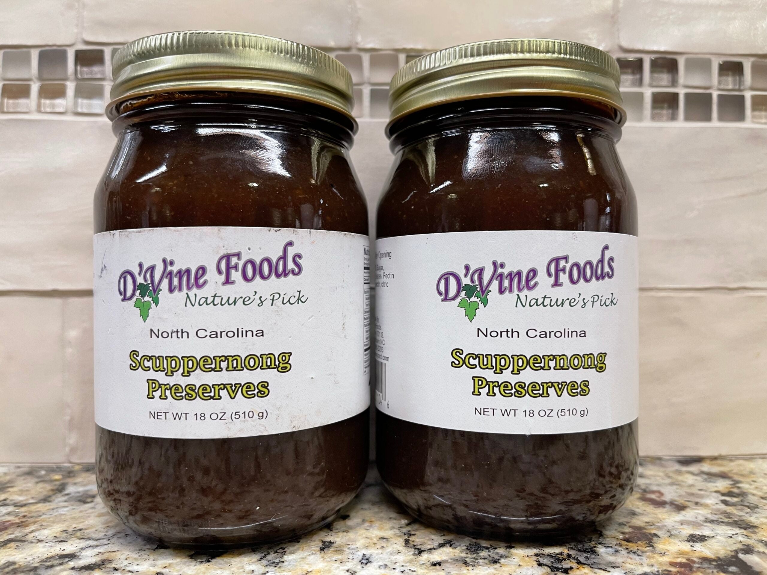 2 Jars of Delicious D'vine Scuppernong Preserves, 18 ounce jar