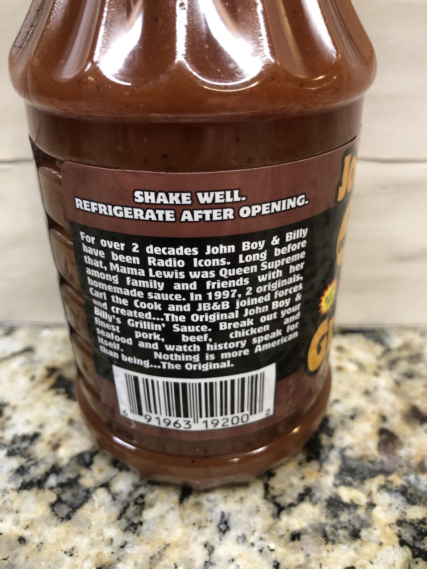 For over 2 decades John Boy & Billy have been Radio Icons. Long before that, Mama Lewis was Queen Supreme among family and friends with her homemade sauce. In 1997, 2 originals, Carl the Cook, Lewis and JB&B joined forces and created...The Original John Boy & Billy Grillin’ Sauce. Break out your finest pork, beef, chicken and seafood and witness history speak for itself. Nothing is more American than being...The Original.