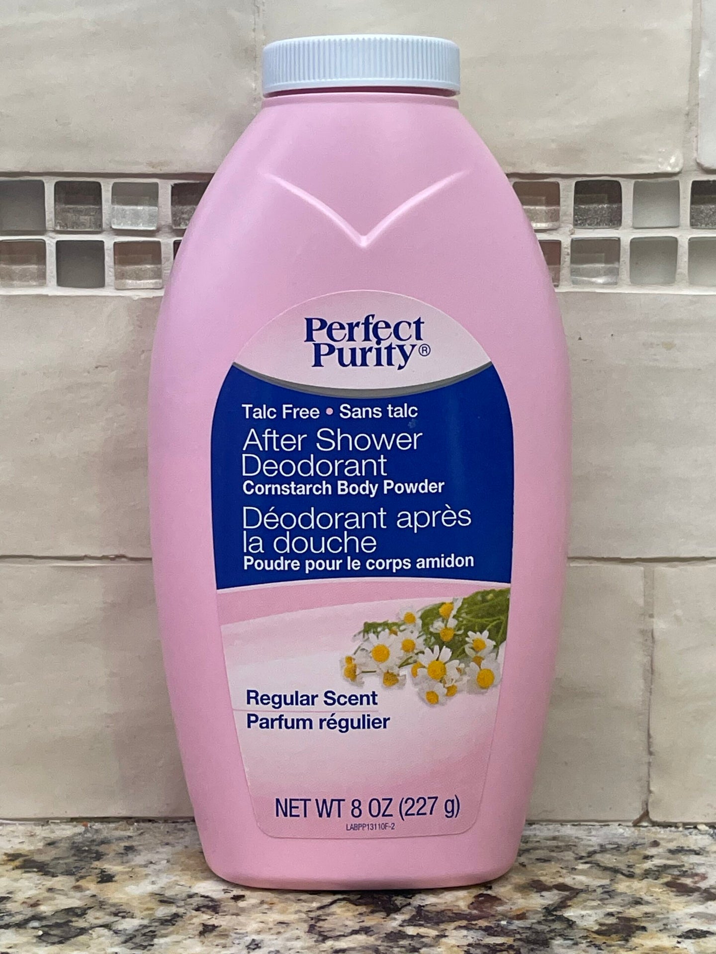 Perfect Purity® After Shower Deodorant Body Powder is talc free and leaves skin soft and fresh, with a sweet fresh scent. Use daily to protect against odor and wetness for a refreshed, clean feeling. Great for use in the morning or throughout the day.