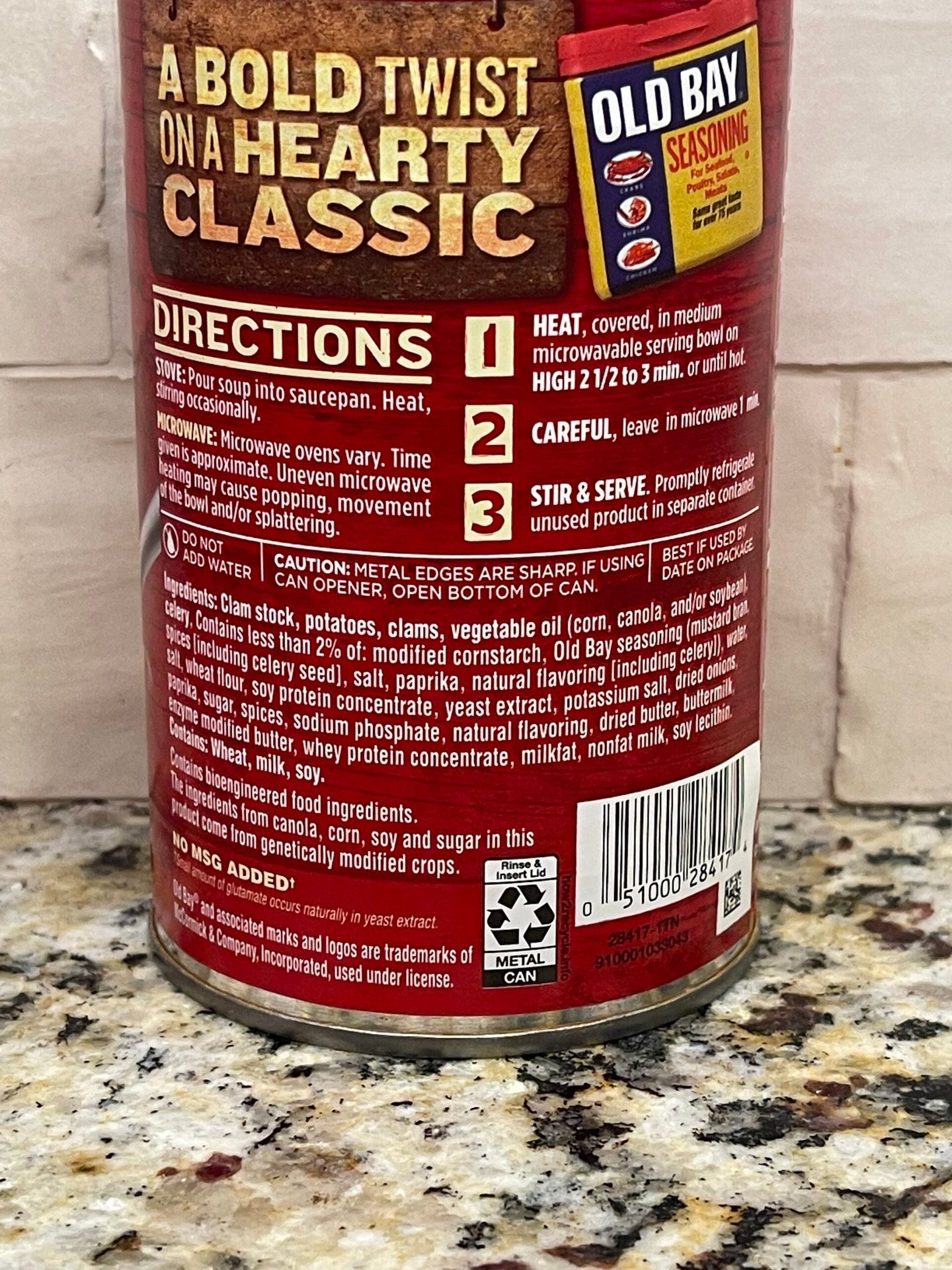 Campbell's Chunky Old Bay Seasoned Clam Chowder combines our hearty New England Clam Chowder with the nation's leading seafood spice - resulting in a bold, rich and flavorful way to satisfy your appetite. In partnership with our friends at Old Bay, this collaboration brings mouth-watering flavor to a generous compilation of succulent clams and hearty potatoes. Kick up it up a notch by pouring the hearty chowder into a bread bowl.
