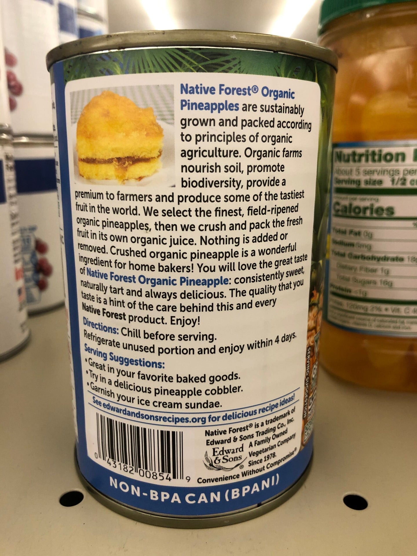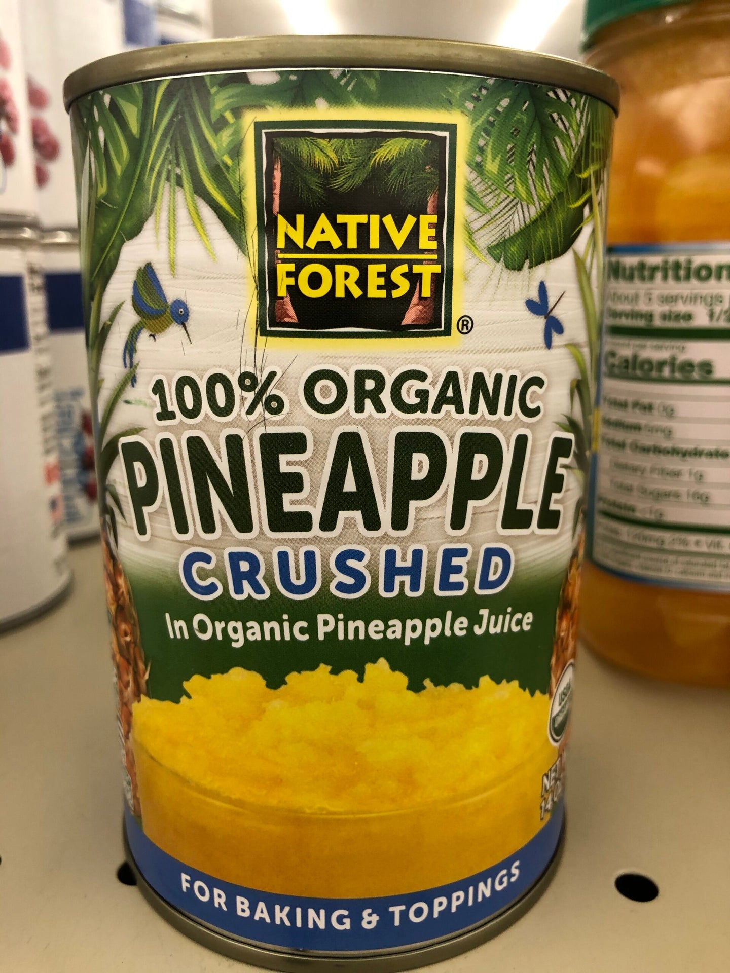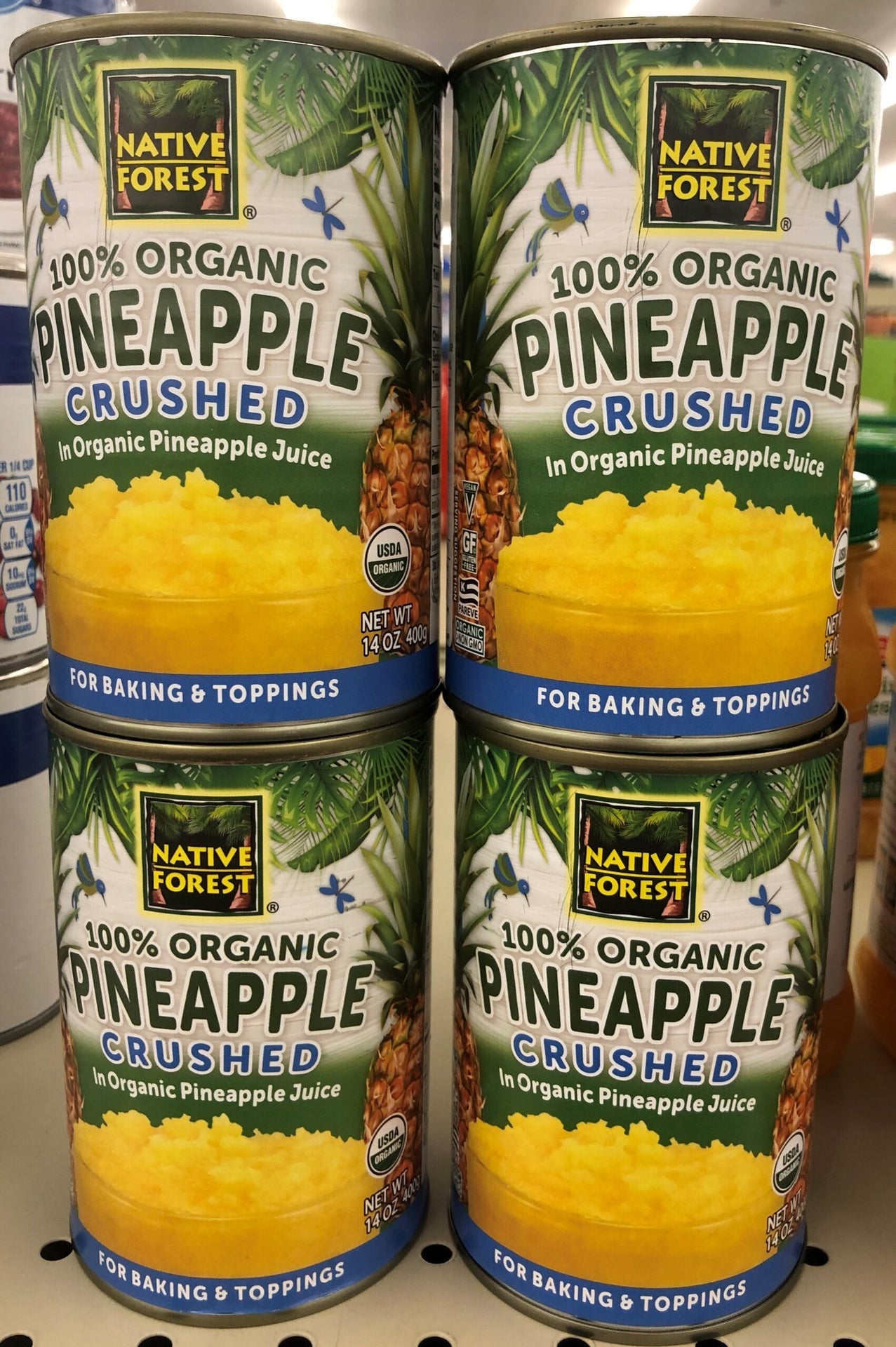 NATIVE FOREST 100% ORGANIC CRUSHED PINEAPPLE ADDS A TROPICAL TOUCH TO YOUR SIDE DISHES, DESSERTS AND BAKED GOODS. THIS 14 OZ. CAN FEATURES ALL-NATURAL CRUSHED PINEAPPLES SOAKED IN ORGANIC PINEAPPLE JUICE SO THE FRUITY FLAVOR SATISFIES YOUR SWEET TOOTH FROM THE FIRST BITE. ADD THIS ORGANIC PINEAPPLE TO SMOOTHIES OR USE AS A TOPPING FOR YOUR NEXT DESSERT.Native Forest Organic Pineapple Crushed, 14 Oz