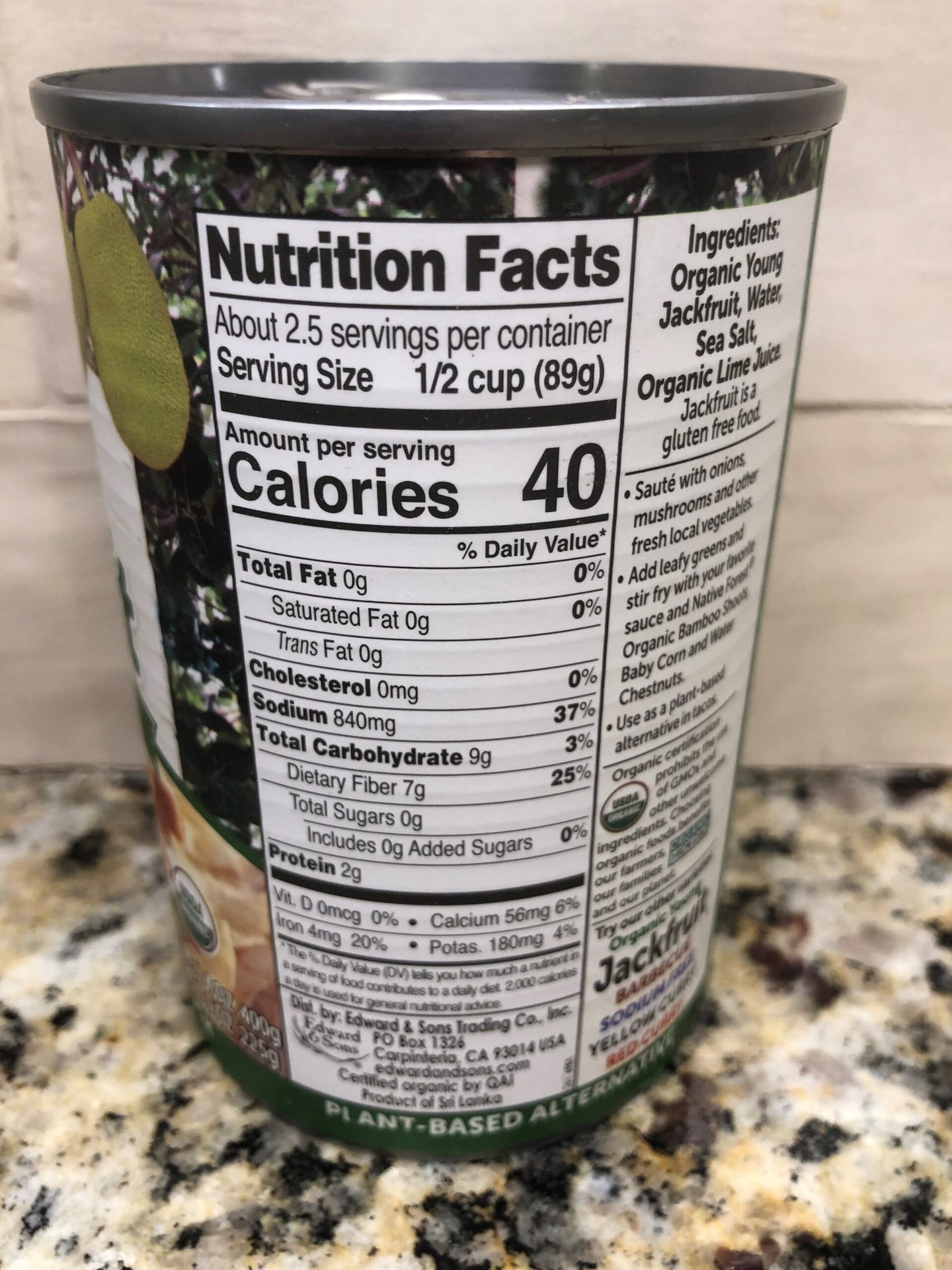 Ingredients: Organic Young Jackfruit, Water, Sea Salt, Organic Lime Juice.