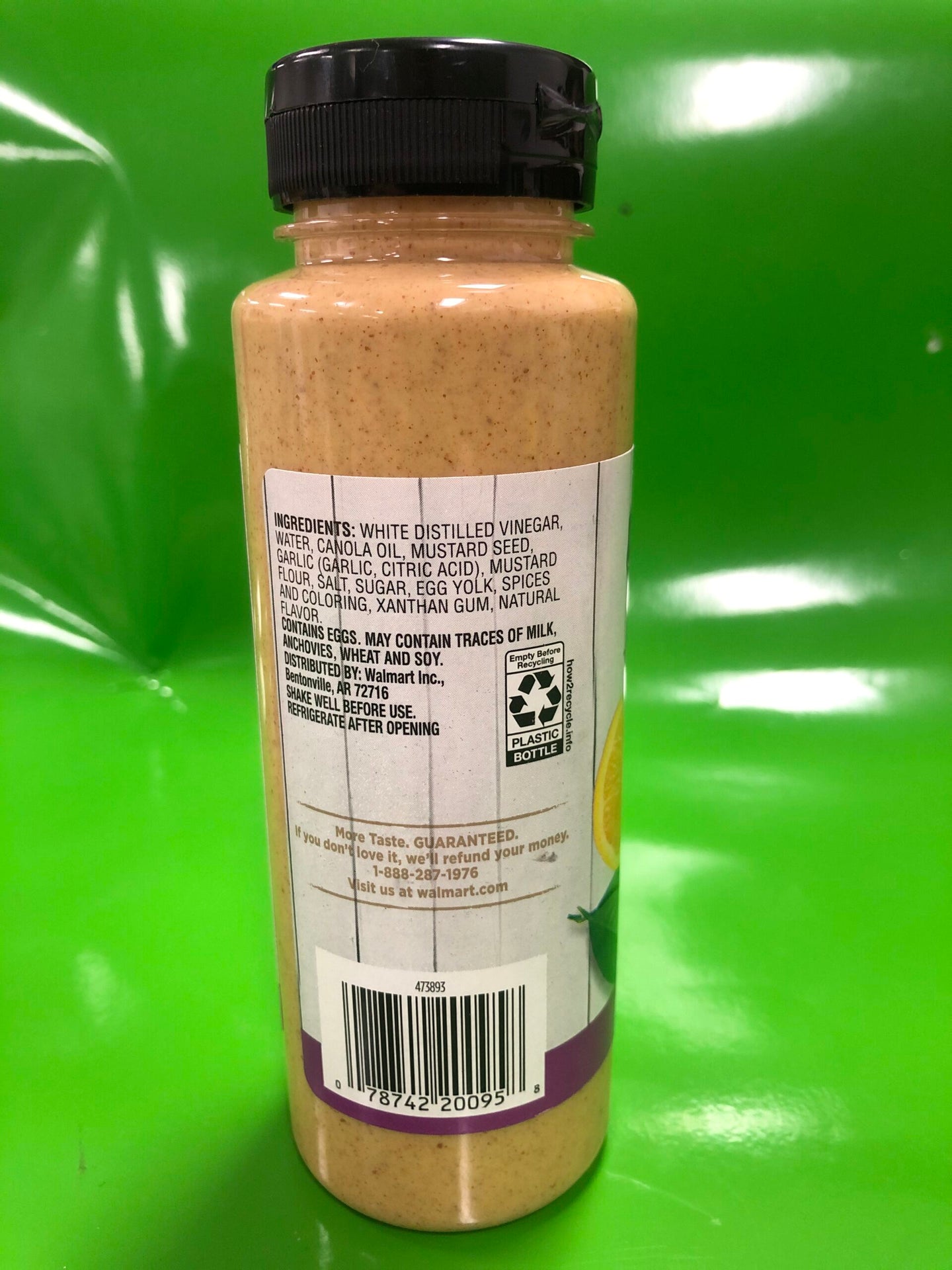 Ingredients: White Distilled Vinegar, Water, Canola Oil, Mustard Seed, Garlic (Garlic, Citric Acid), Mustard Flour, Salt, Sugar, Egg Yolk, Spices And Coloring, Xanthan Gum, Natural Flavor.