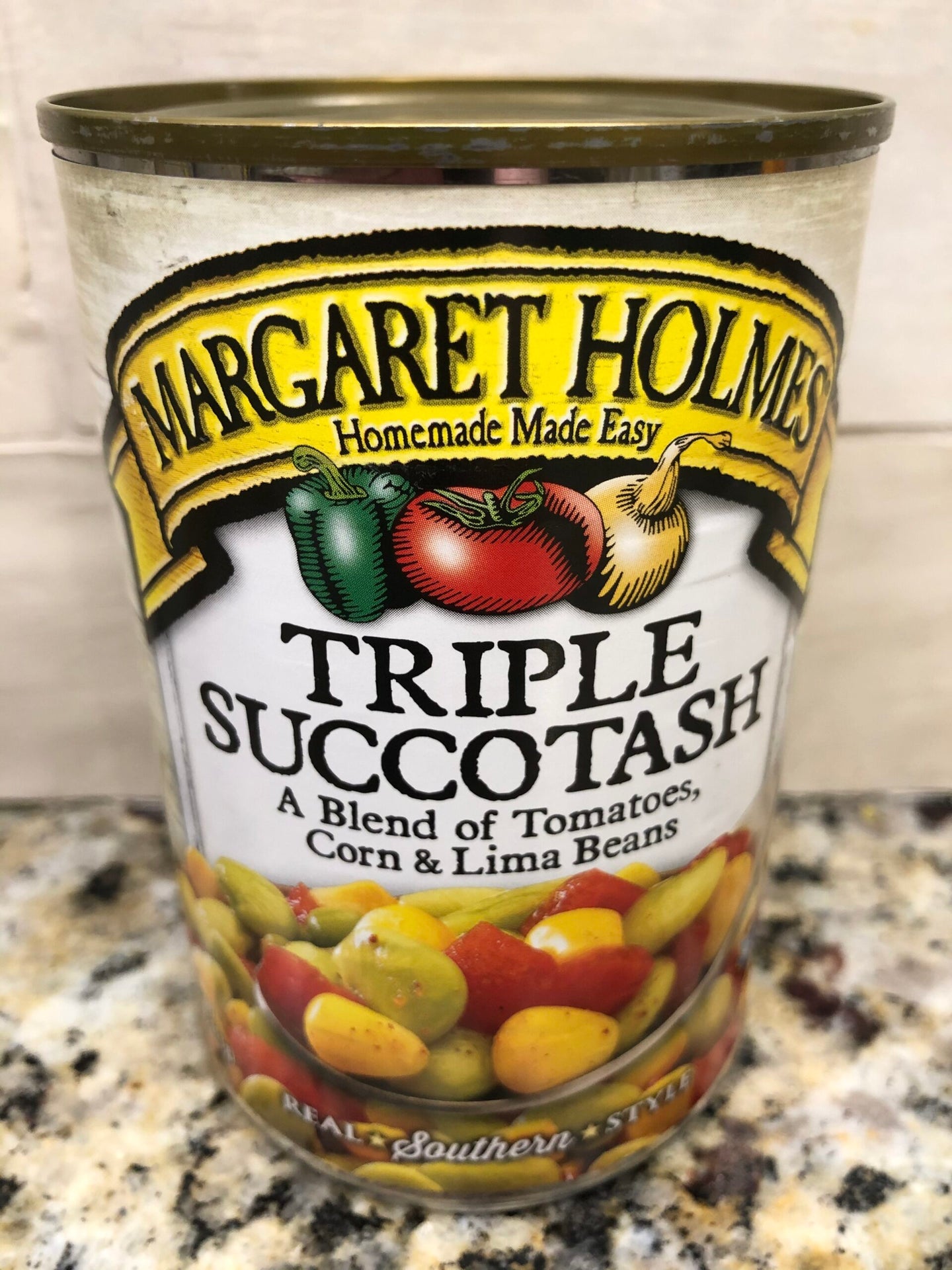 Our Triple Succotash is a flavor-packed combination of corn, butter beans and tomatoes prepared with the perfect blend of seasoning. An excellent side dish or as an ingredient to soups and salads, Margaret Holmes Triple Succotash is a Southern favorite.