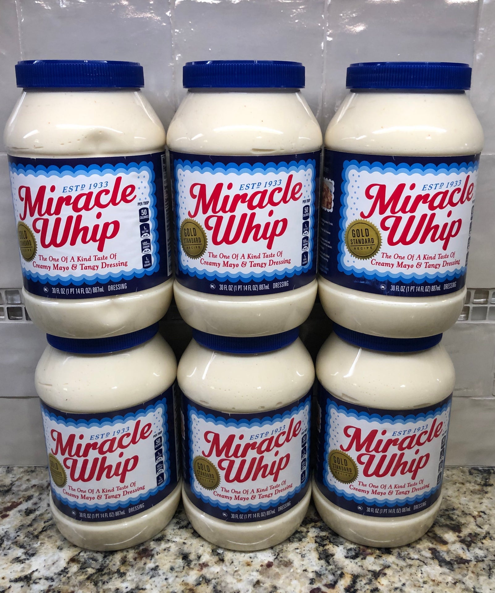 - 6 Quart Jars Miracle Whip Original Dressing 30 oz Mayonnaise Mayo