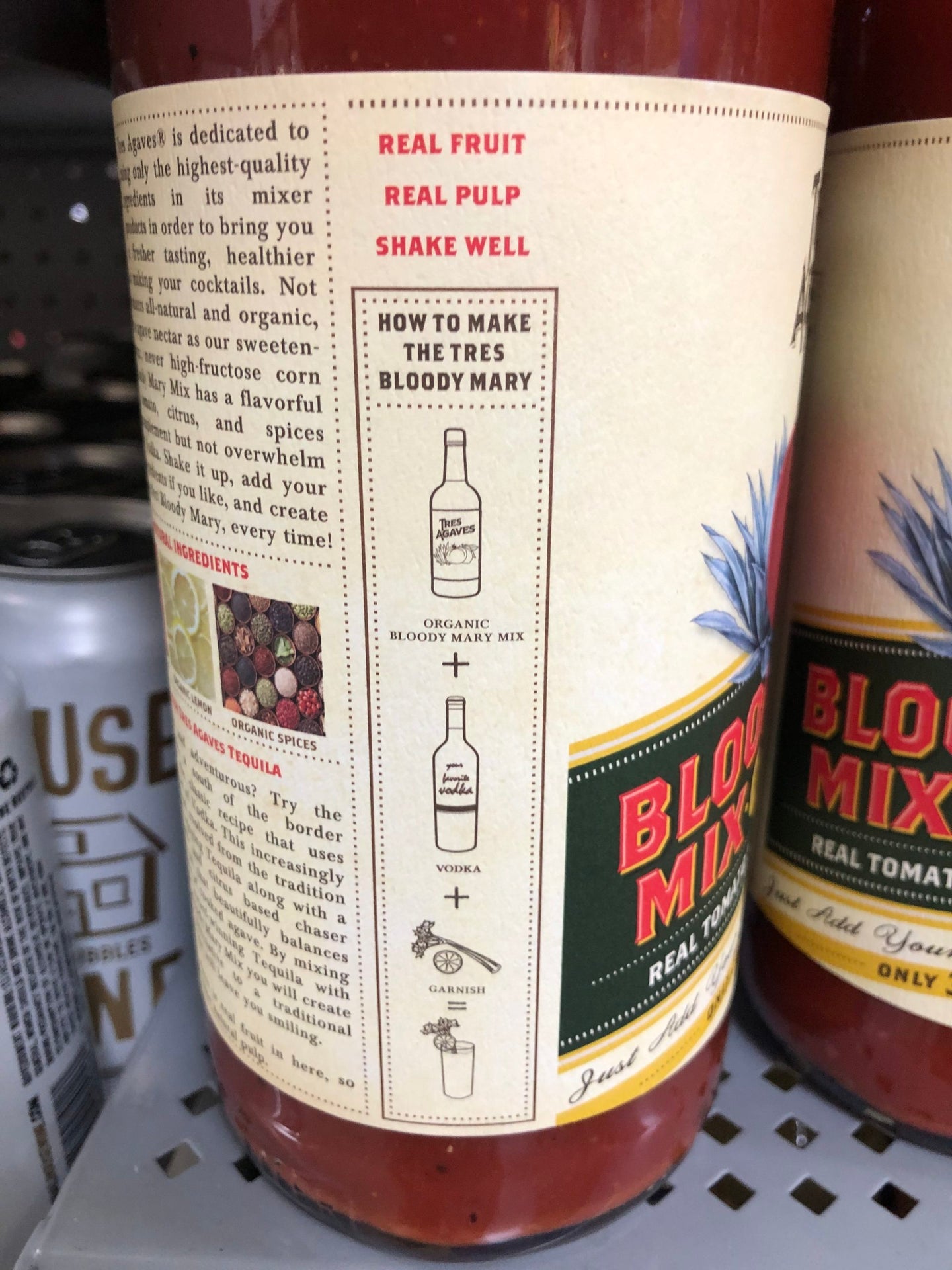 Feeling bold and adventurous? Try the Bloody Maria, a south of the border variation of the classic recipe that uses Tequila instead of Vodka.Tres Agaves Mix Bloody Mary,33.8 Oz